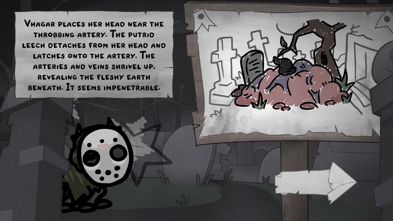 При первом входе вы увидите преграждающий путь алтарь из плоти и пульсирующих вен. Появится возможность принести в жертву случайно выбранного кота. Мы заметили, что проверяется параметр удачи, но даже при этом кот все равно погибает. Вы также можете проигнорировать алтарь и сразу вернуться домой.