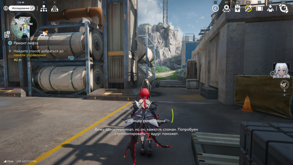 Пройдите мимо них и найдите слева искрящийся терминал. Отремонтируйте его.