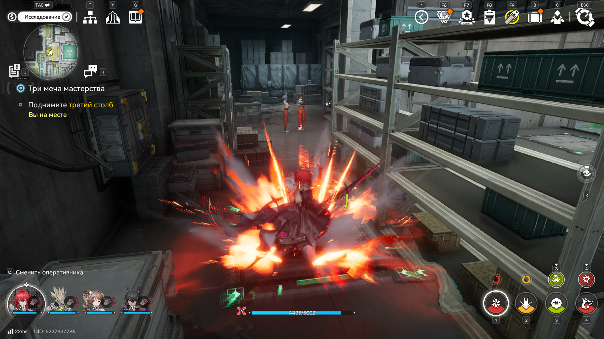 Запустите. Обратите внимание, что нажимных плит здесь пять штук. Пятая находится за стеллажом впереди, и ее нужно нажать четвертой по счету.