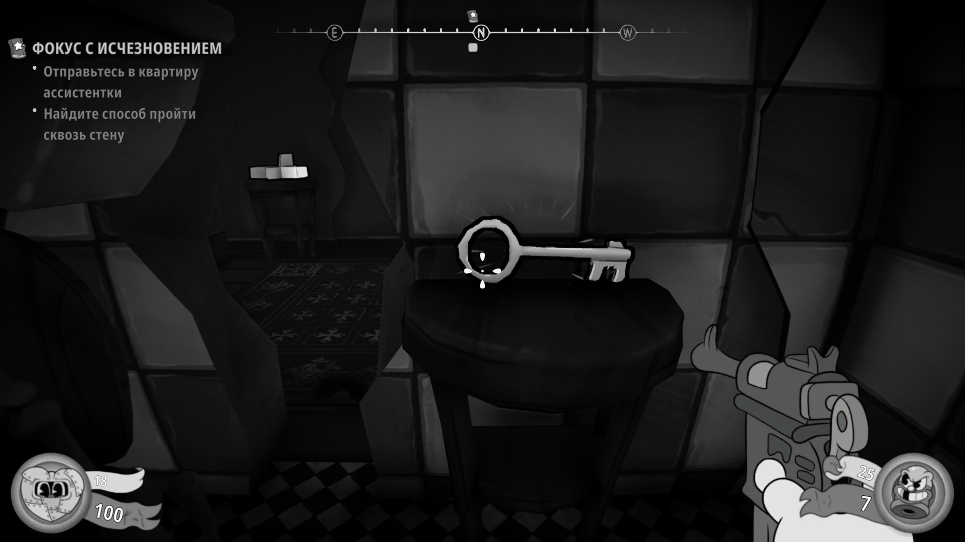 Но прежде сходите в правый ближний угол, найдите комнату для допросов и заберите со стола ключ от тюрьмы.