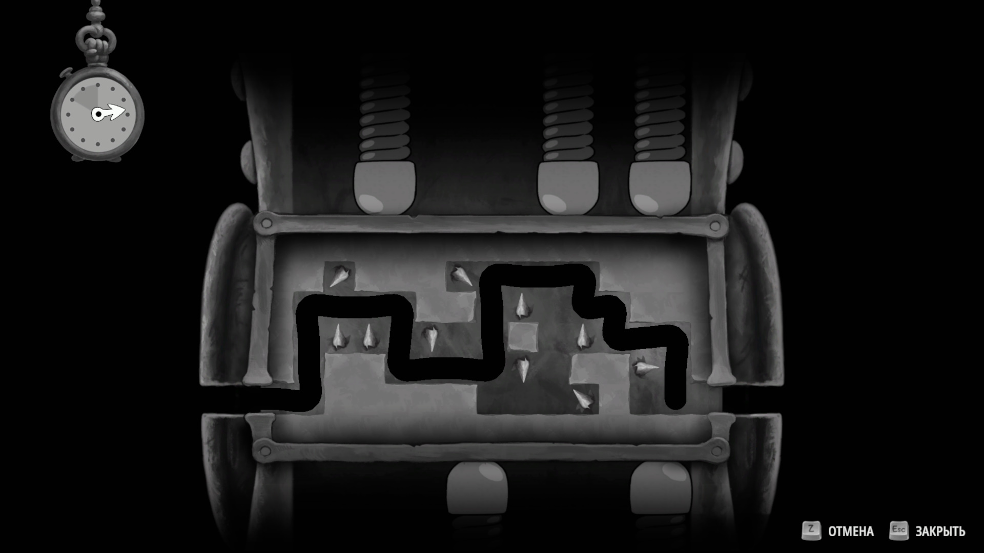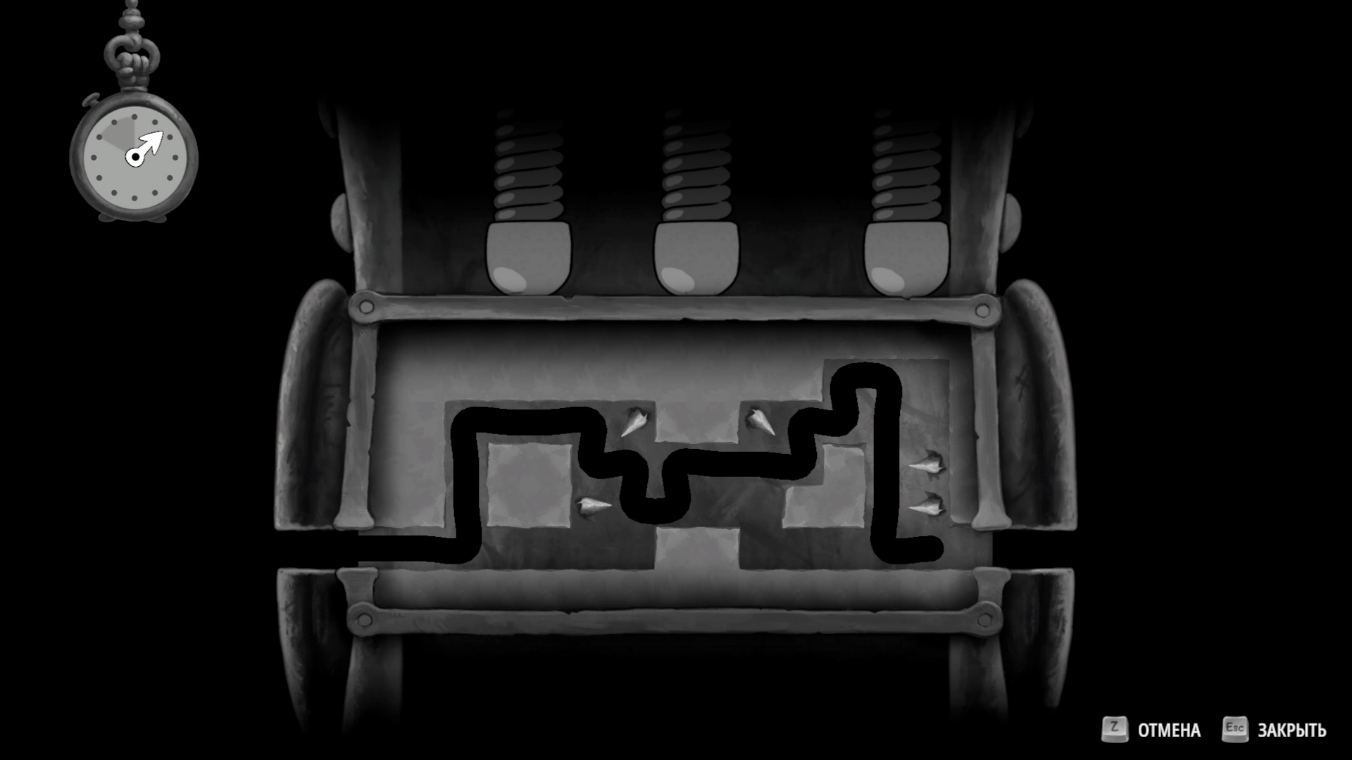 Процесс взлома при этом одинаков: нужно перемещать черную линию так, чтобы задвинуть все выпирающие элементы. А уже после следуйте к выходу.