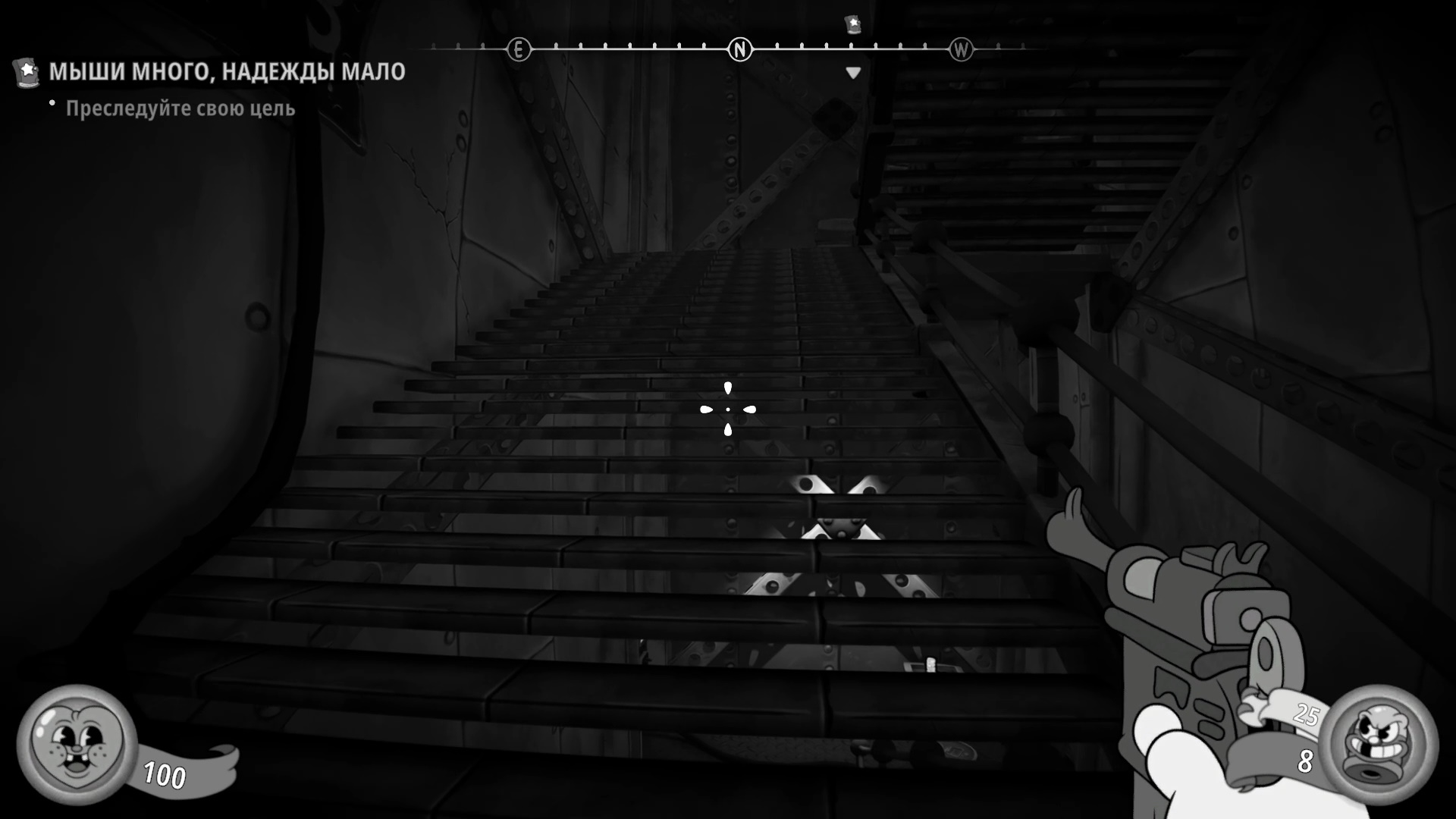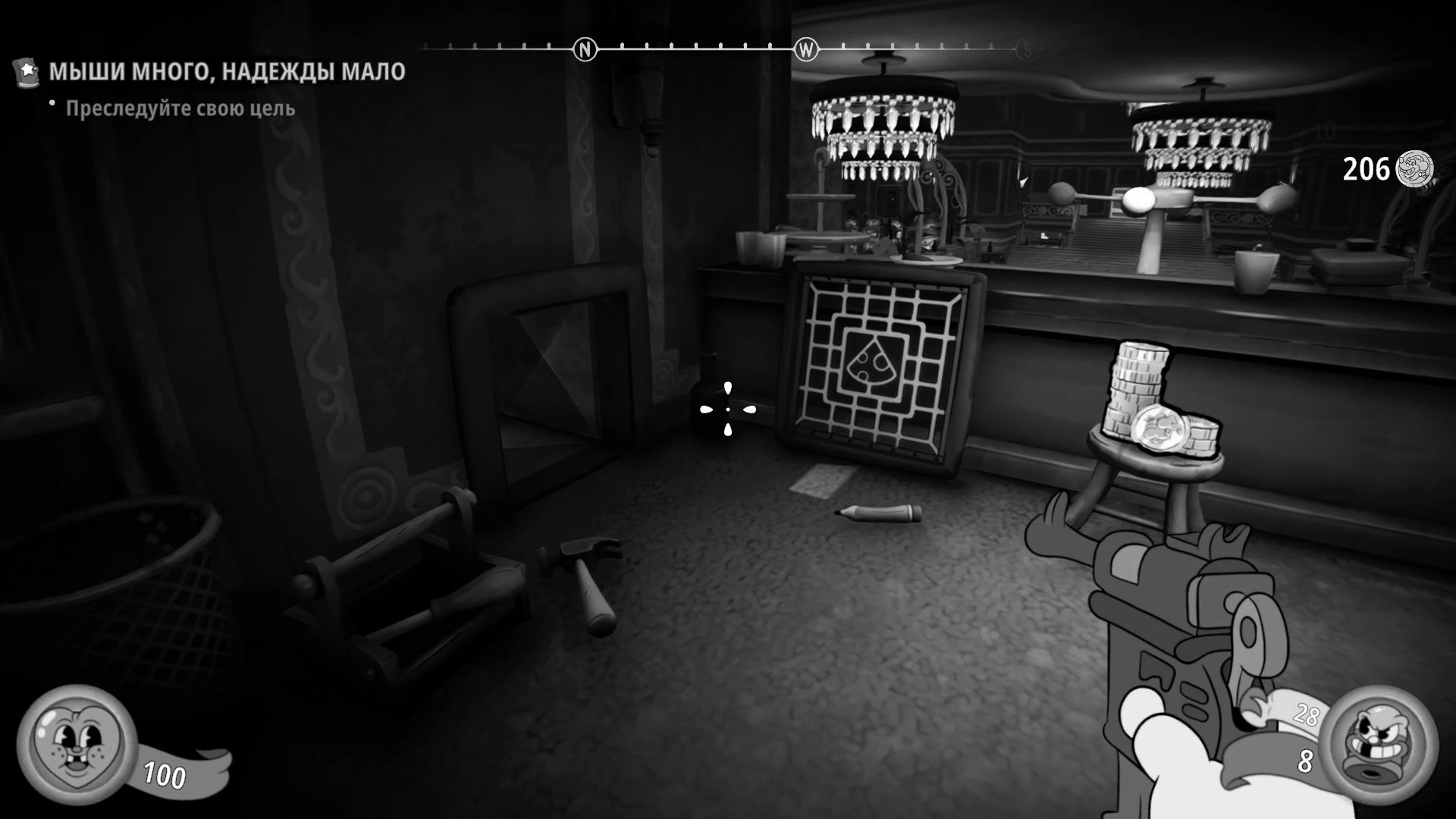 Зачистите зал с огромной рулеткой. Соберите все припасы, пройдите на другую сторону, поднимитесь по ступеням и не спешите.
