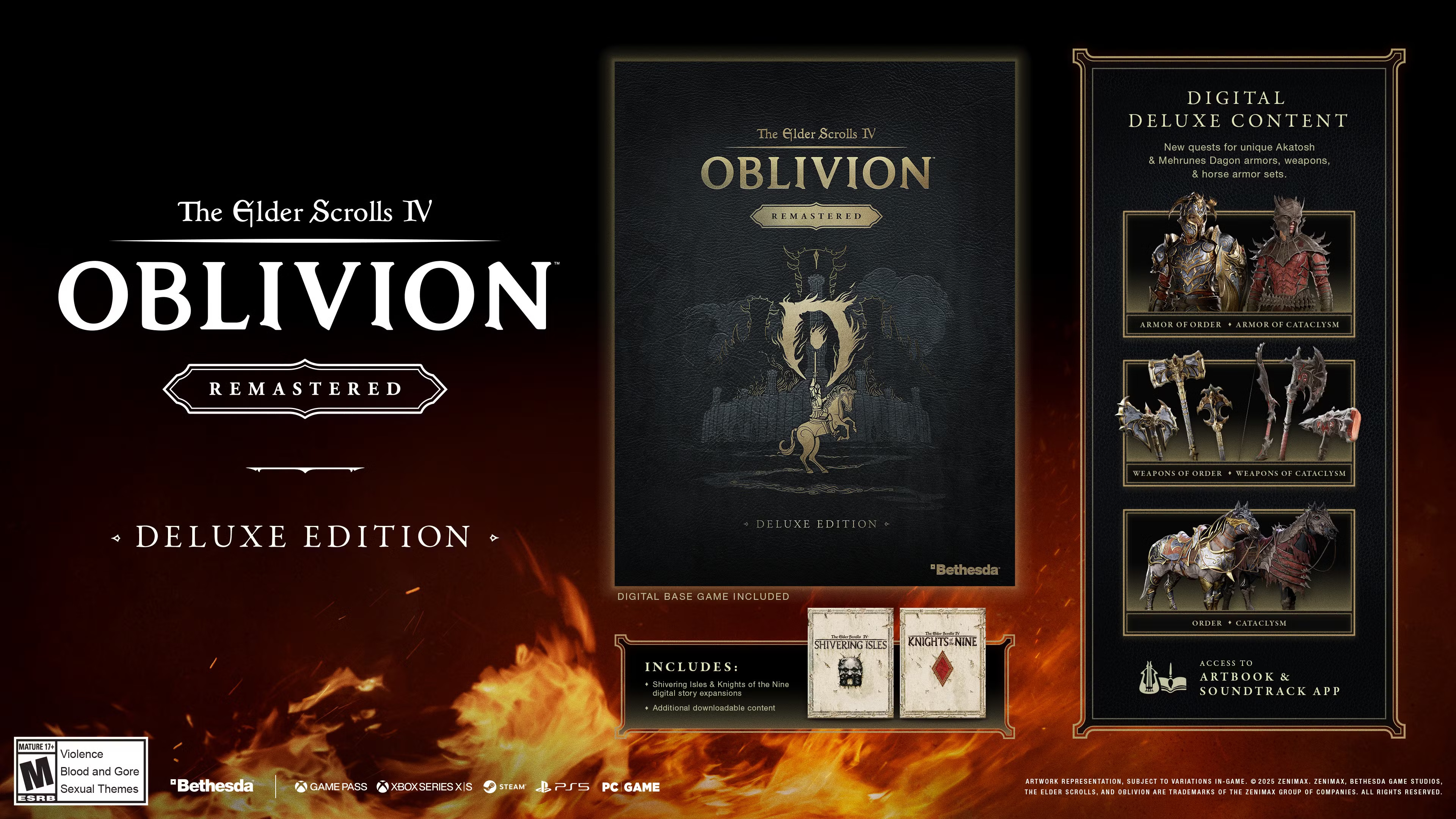 Deluxe Edition включает четыре новых квеста, за выполнение которых вы получите эксклюзивные комплекты брони, оружие и доспехи для лошадей, посвященные Богу-Дракону Времени Акатошу и даэдрическому принцу Разрушения Мерунесу Дагону: