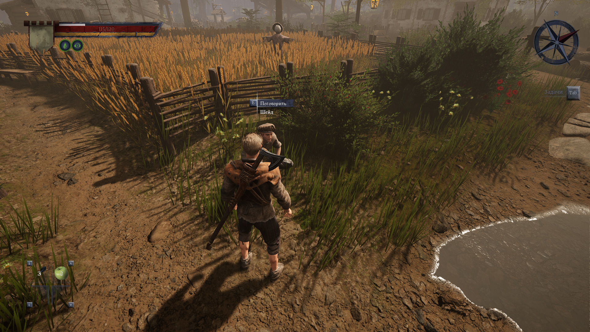 Еще один персонаж, которого можно встретить неподалеку от Нереста. Поговорите и согласитесь помочь. Не спешите и идите следом за Лисом до заброшенной деревни. Если пройдете проверку ловкостью, сможете получить кинжал получше обычного.
