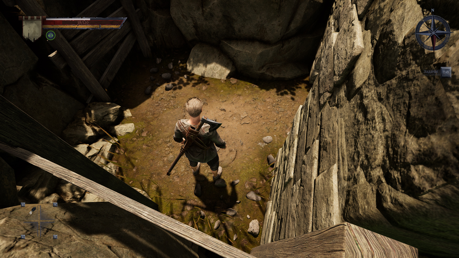 Отправляйтесь к дому Нереста. Идите на северо-запад от дома, к склону позади него. Поднимитесь в гору. По пути можете наткнуться на палатки с двумя разбойниками. Но интересуют вас не они, а то, что находится еще дальше на северо-запад. Около горы есть деревянный забор, за которым расположена старая штольня. Переберитесь через забор при помощи ящика и заберите ключ, лежащий на другом ящике.