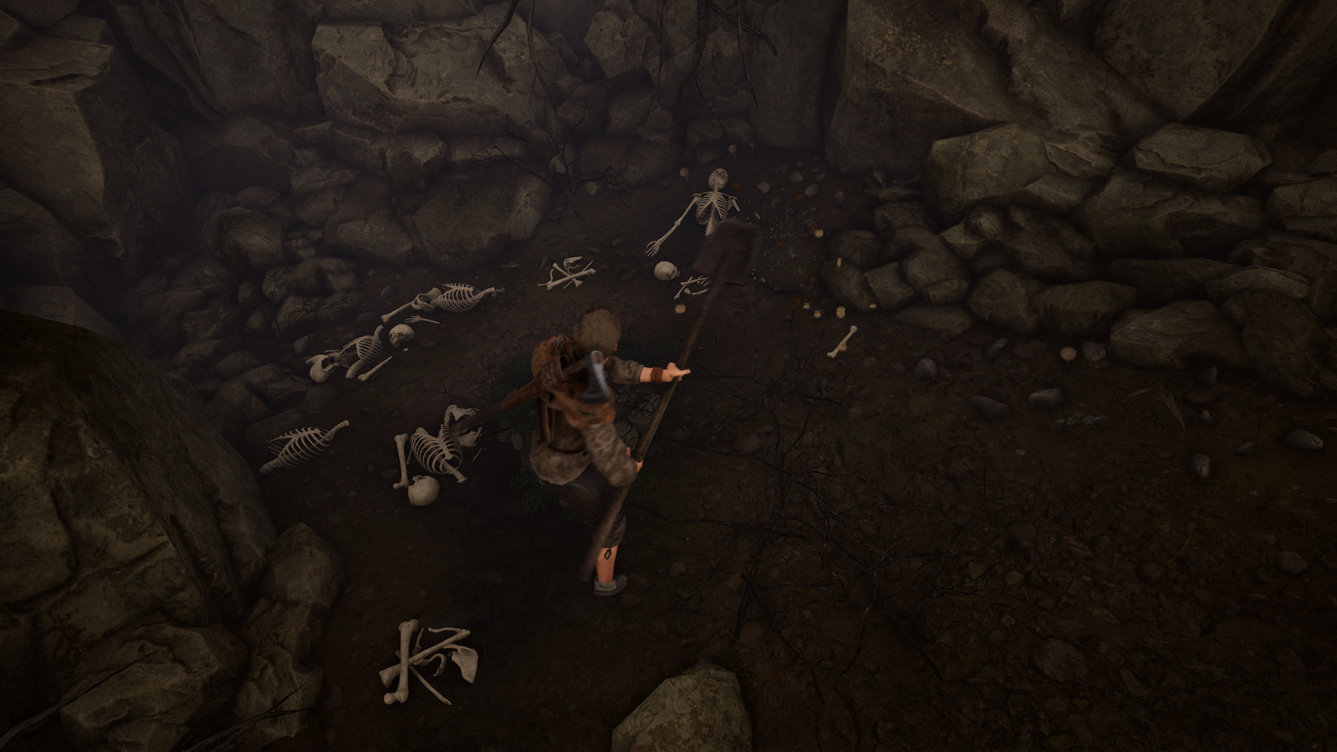 Впрочем, убивать его не нужно. Выманите жука из пещеры, подальше, а затем убегите обратно. Пока жука нет, выкопайте землю в самом конце пещеры, где лежат человеческие останки. Внутри сундука лежит следующая добыча: лагерные припасы, 3 факела, 30 золота.