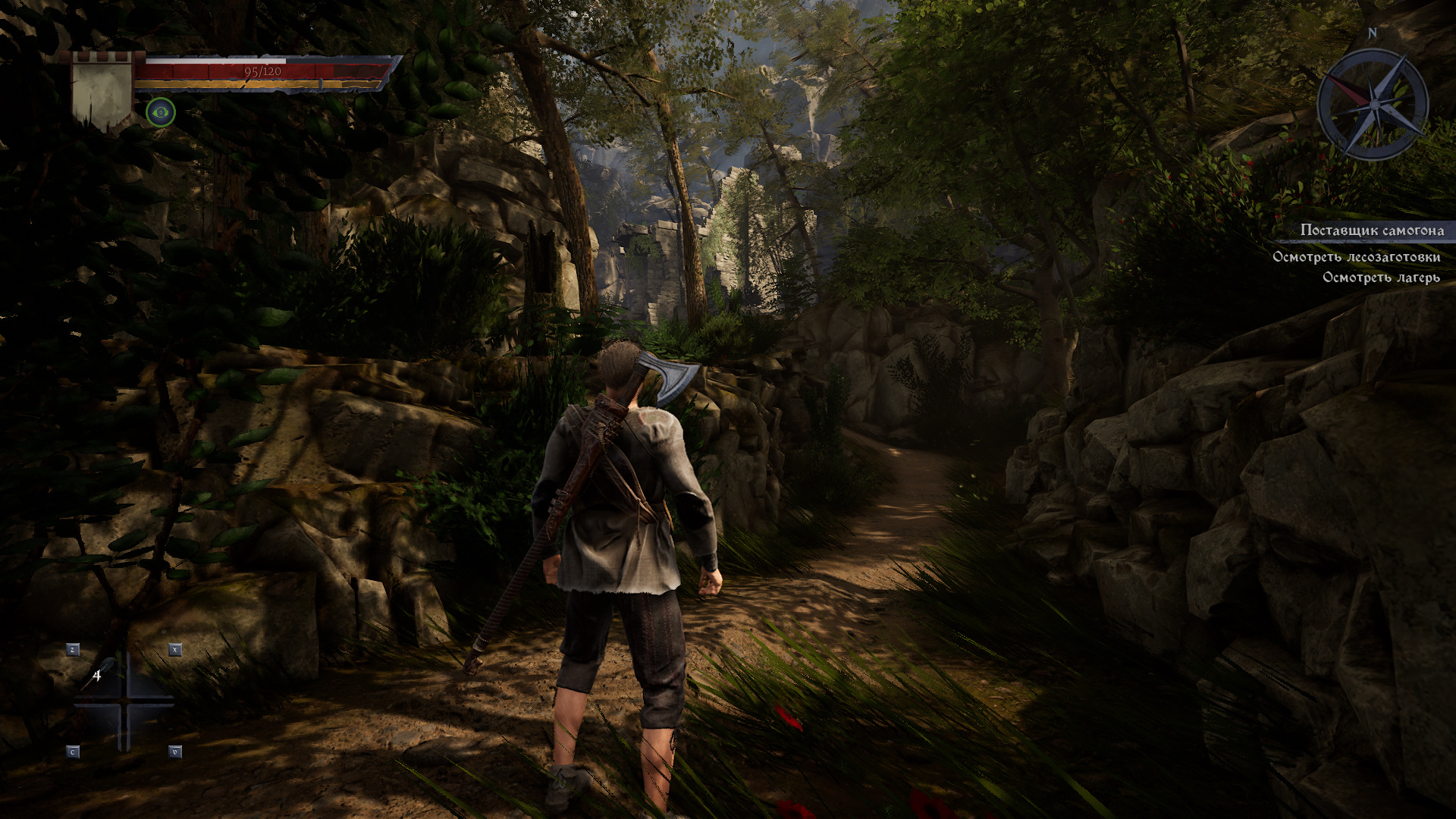 Здесь будет несколько скитальцев, клыкарей и даже мародеры. Двигайтесь по тропе, пока не обнаружите в горах лагерь лесорубов. Отыскать его довольно непросто.