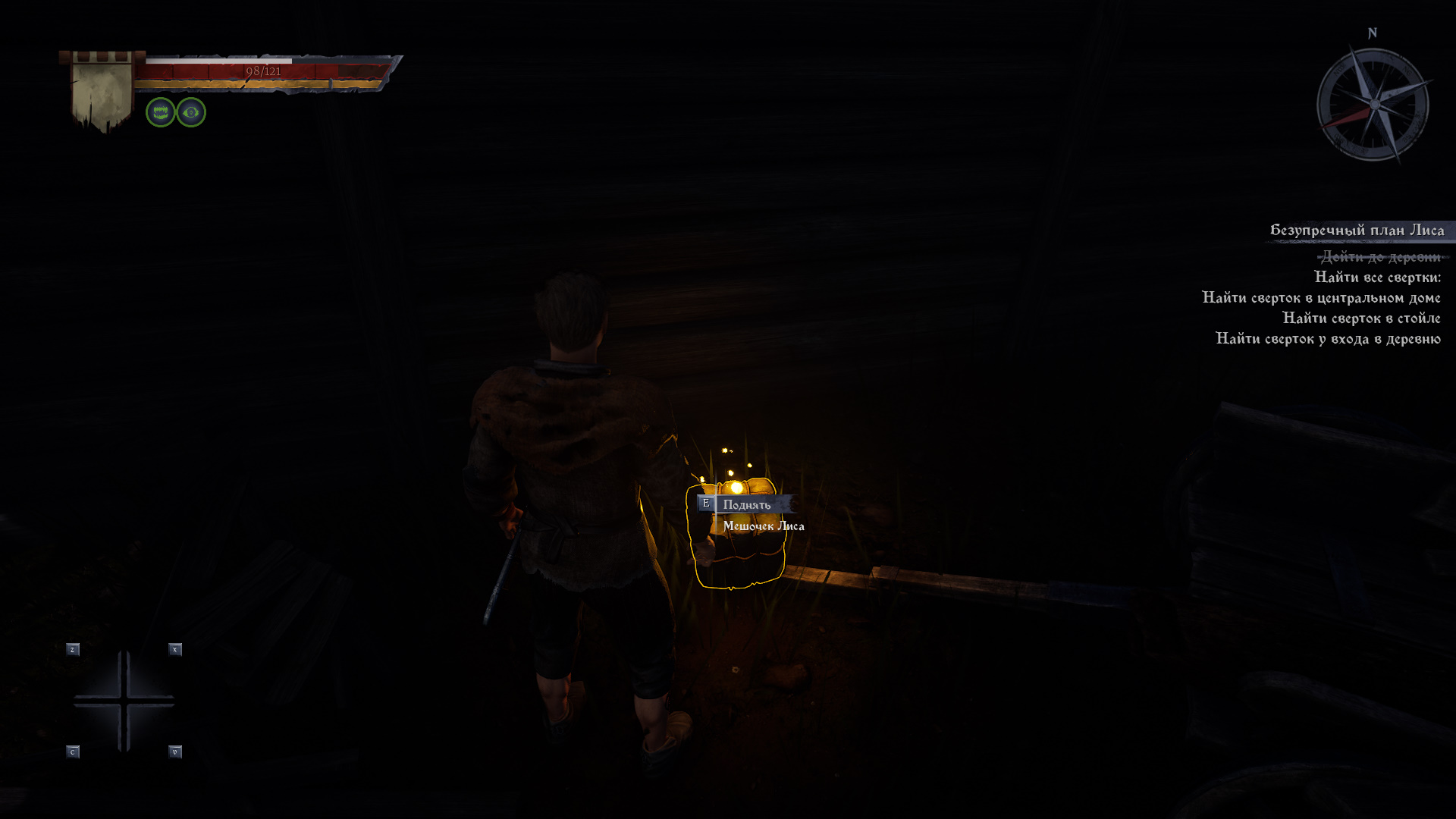 Нужно найти три свертка. Благо все они будут подсвечены. Пройдитесь по деревне, уничтожьте крыс и соберите припасы в разных локациях. Обратите внимание на запертый дом. Даже если его не обнаружите, Лис упомянет о нем.