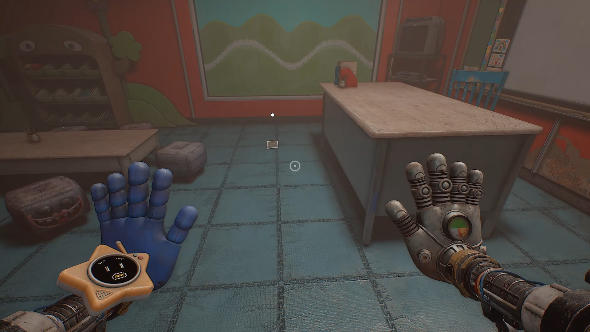 Пройдите дальше по коридору и подберите видеокассету. Продолжайте движение вперед и сверните в комнату слева — именно оттуда ранее вырвался Хагги. Вставьте видеокассету в проигрыватель справа. Она уже установлена, требуется лишь активировать воспроизведение. Просмотрите видеоролик, посвященный эксперименту 1170.