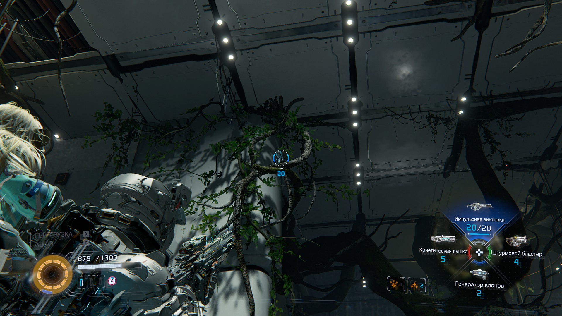 На столе слева лежит импульсная винтовка — новое основное оружие. Идите в другую сторону и активируйте регулятор лува. Вы уничтожите одну часть деревьев.