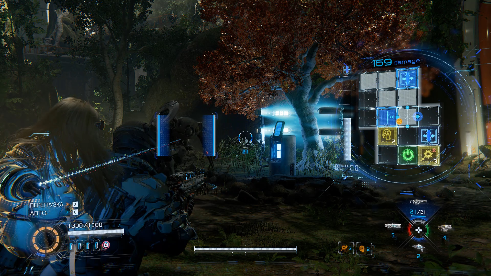 Взломайте дверь у лестницы, победите невидимого врага, откройте контейнер с 3 компонентами для улучшения. Справа найдите терминал, который позволит уничтожить деревья в помещении.