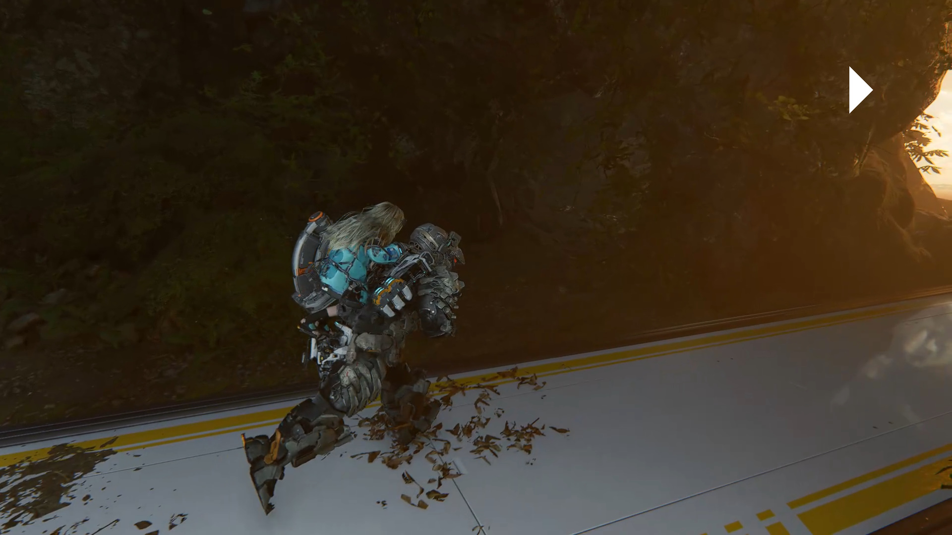 Пройдите через другой проем от главного лифта. Можете обсудить с Дианой бабочек. Уничтожьте врагов, поднимитесь по ступеням и осмотрите терминал. Для подключения таких терминалов нужны чипы. Прыгните влево и спуститесь по ступеням в нижнюю часть помещения. Пройдите через дыру в стене к дереву, победите врага и достаньте чип генерации.