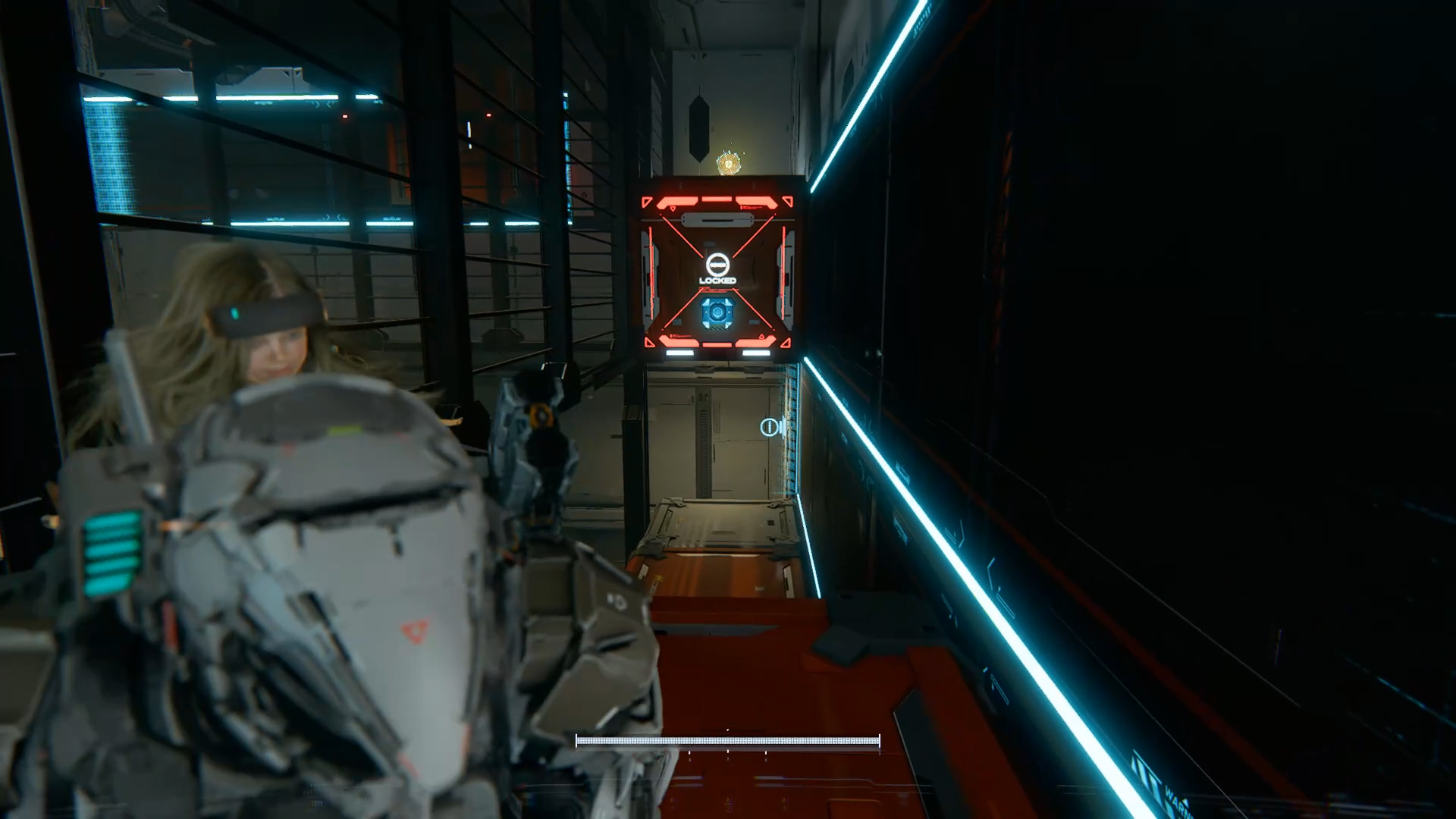 Вернитесь в начало и по опустившемуся контейнеру перепрыгните к двери на другой стороне. Взломайте узел, чтобы выйти через другую дверь. Вы впервые столкнетесь с Лунокопом. Победить его нельзя, лучше избегать столкновения. Внизу справа есть красный лув, который вы по-прежнему не умеете взламывать.