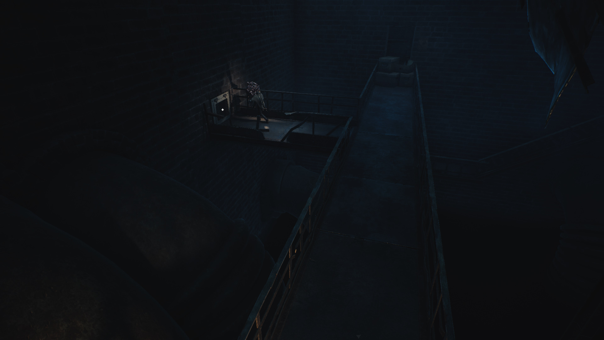 Взаимодействуйте с люком в полу и спрыгните вниз. Это очень темный участок — нажмите на клавишу F, кнопку R1 или Lb, чтобы достать зажигалку. Двигайтесь по трубе и ползите в проем, удерживая клавишу CTRL, кнопку L2 иди LT.