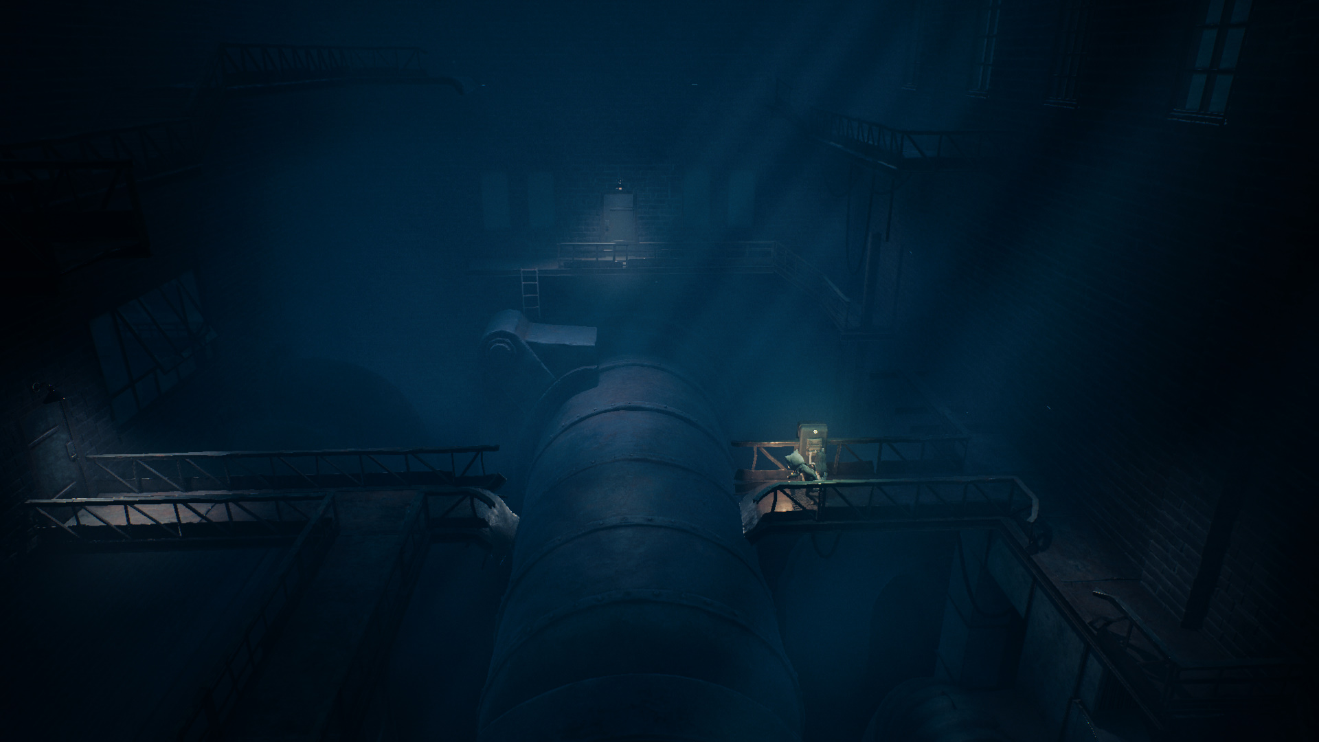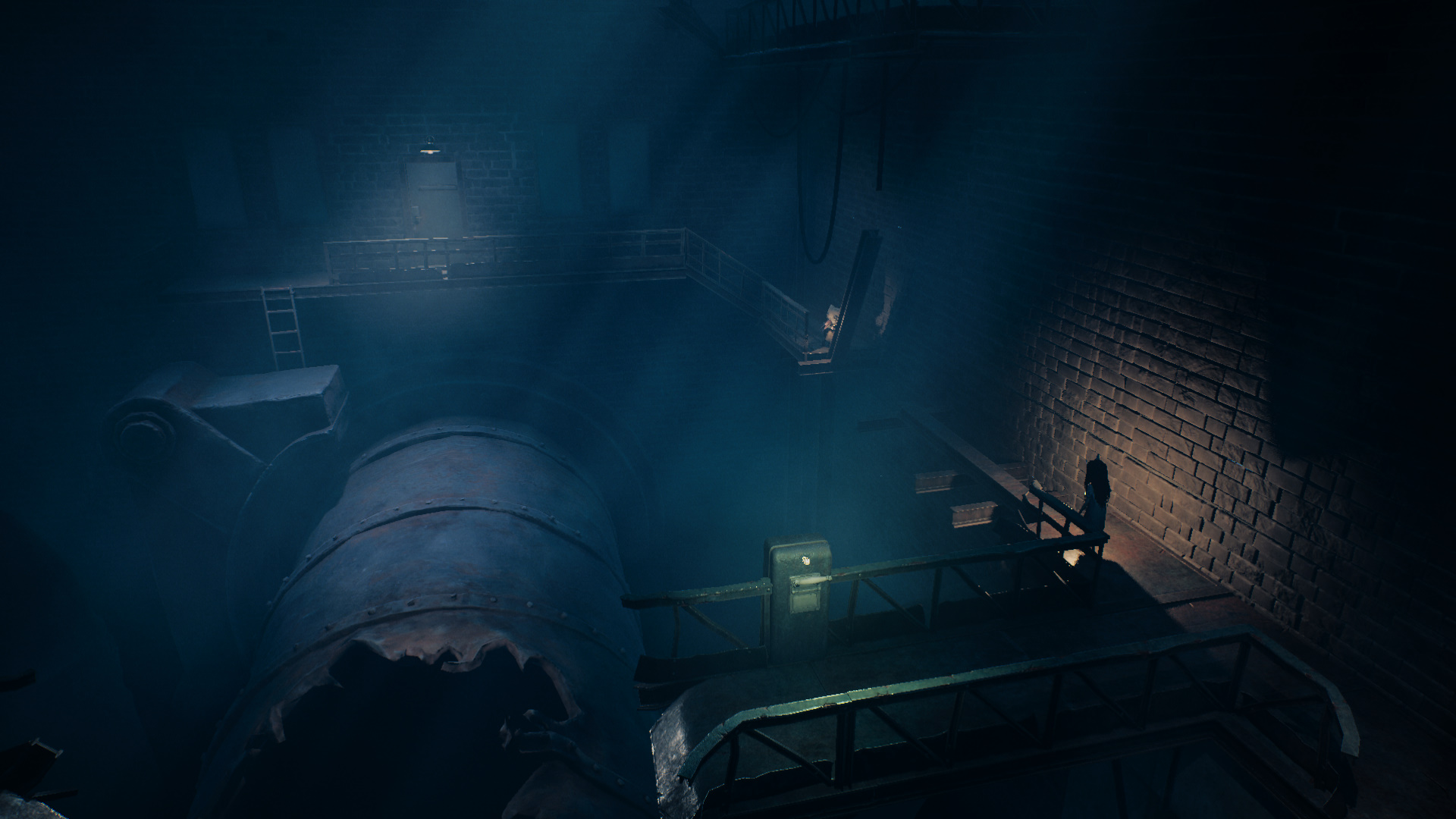 В этой же комнате взаимодействуйте с рубильником в правом дальнем углу — снаружи начнет вращаться большая труба.