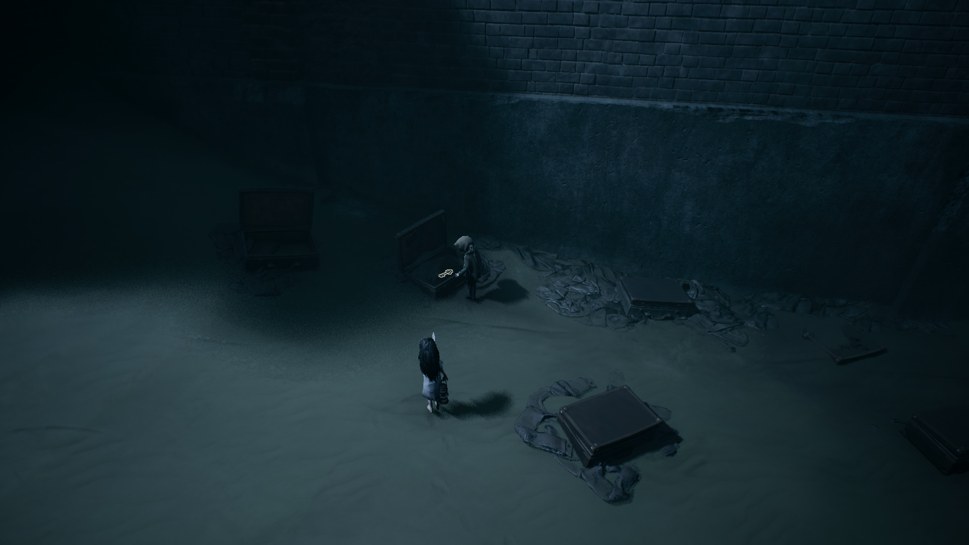Сразу за мостом остановитесь и бегите по рельсам вправо. Войдите в открытый вагон, в его противоположном конце выйдите на другую сторону и откройте гроб с призраком ребенка.
