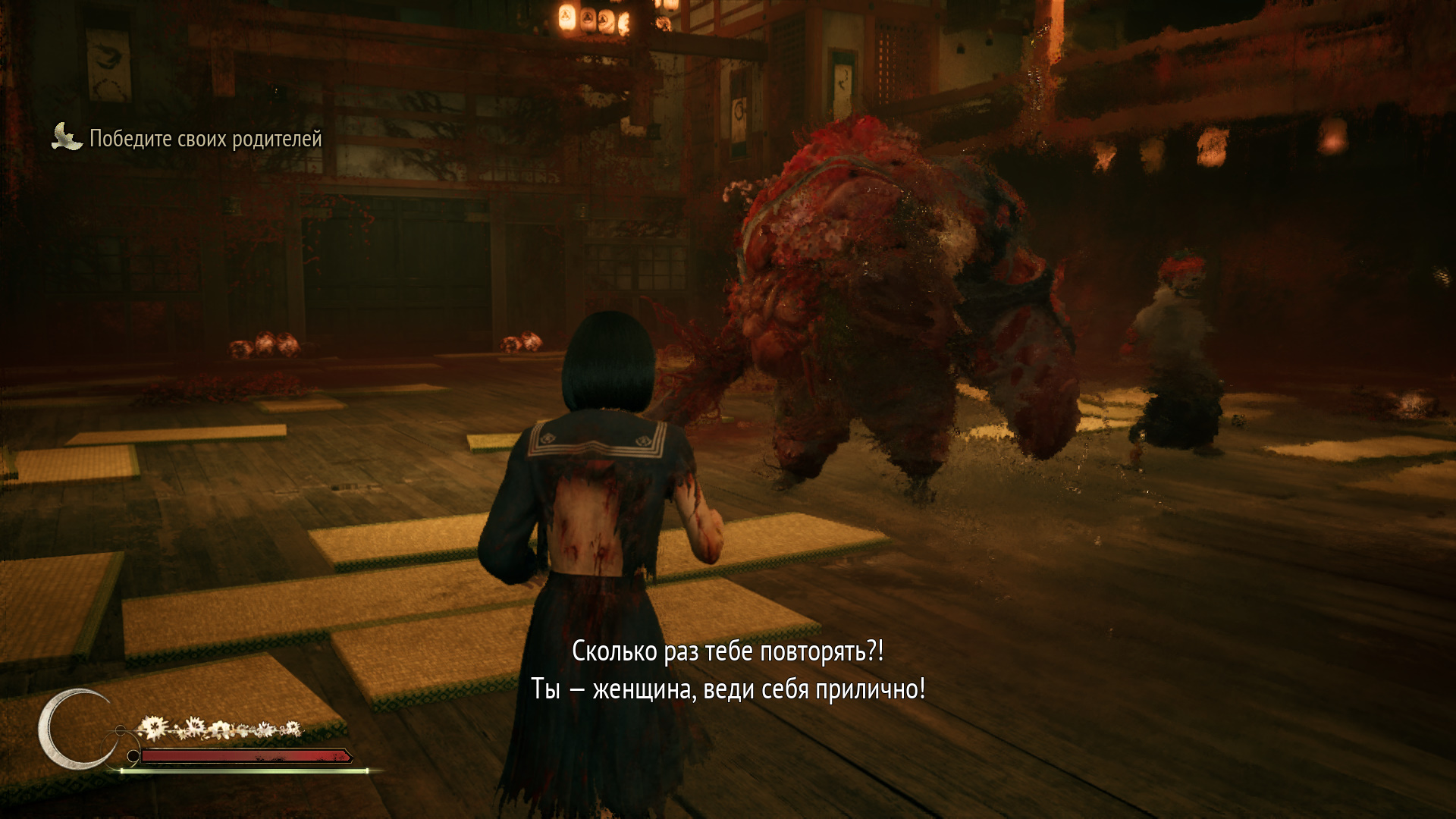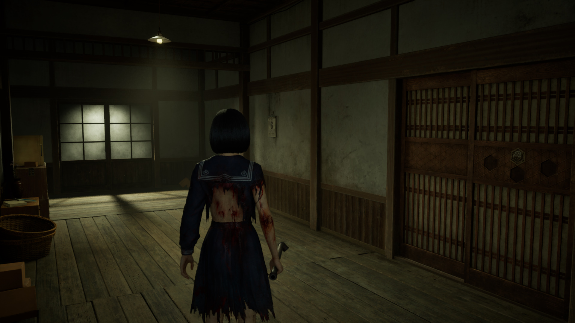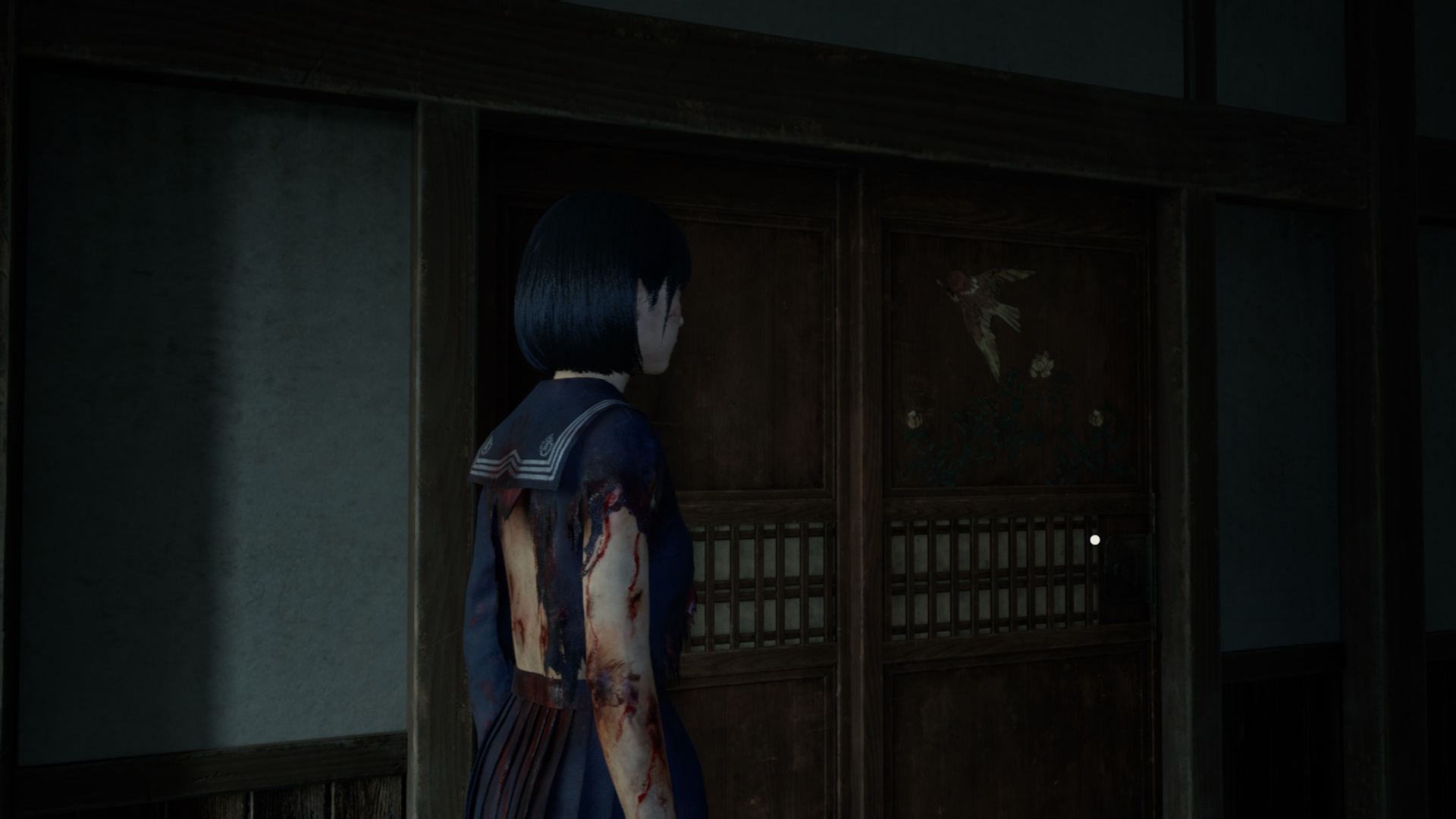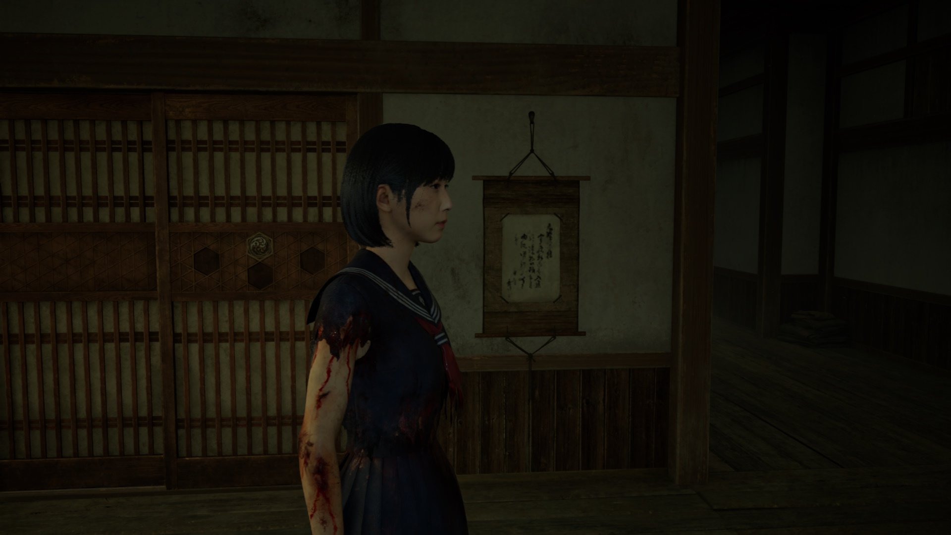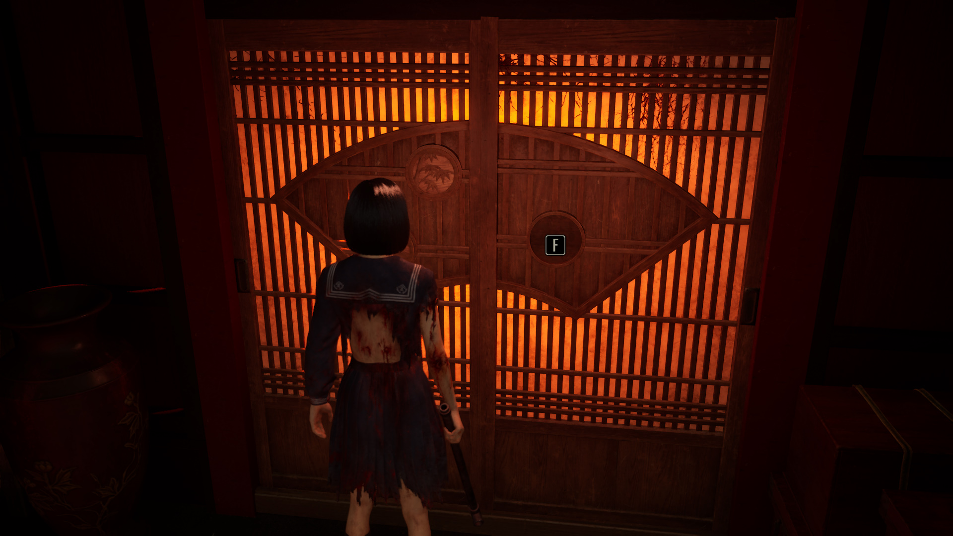 Вы попадете в альтернативную версию дома. Идите вперед, сохранитесь у алтаря справа и пройдите через дверь слева. Учтите, что за ней стоит монстр. В комнате слева ищите второго, а после откройте дверь, которая ведет в западный коридор. Сразу же войдите в комнату за дверью слева, чтобы найти Эму для улучшения Хинако.
