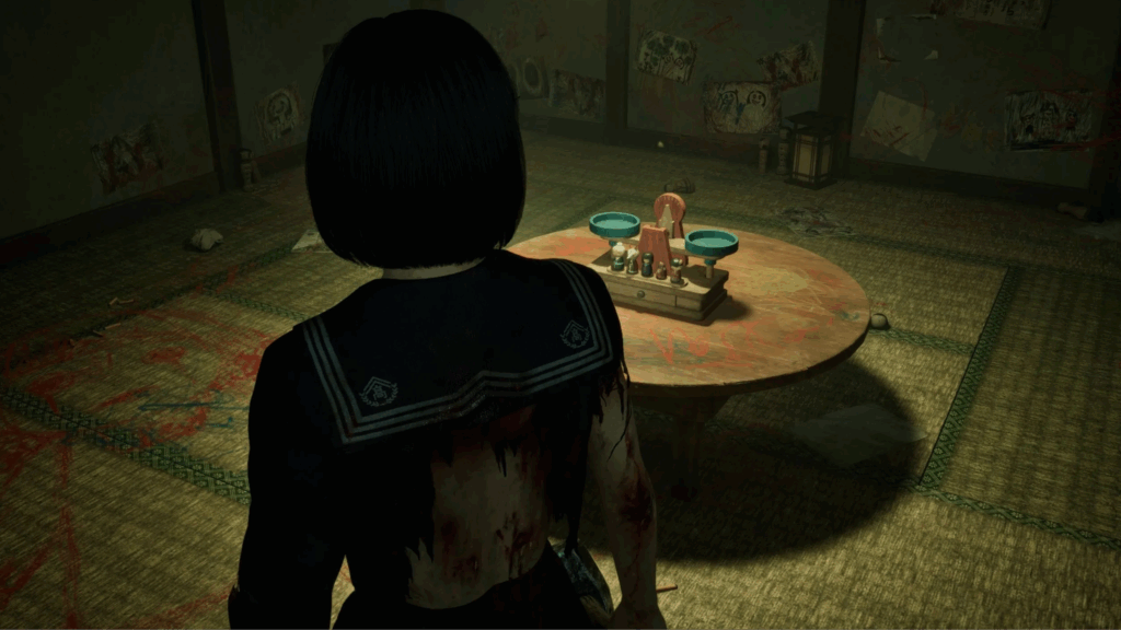 Чуть ниже есть комната с большим тотемом и глазом, а на полу валяется документ «Страница из дневника мамы». Воспользуйтесь дверью около комнаты Хинако, чтобы вернуться в обычный дом.