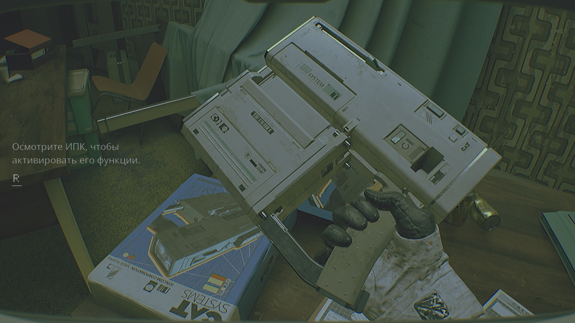 Очнувшись после вступительной кат-сцены, можете изучить рисунок и письмо справа, взглянуть на компьютер, но после придется снять шлем астронавта. Все взаимодействия происходят через ЛКМ или клавишу E, при этом отменить или убрать что-либо можно щелчком ПКМ.