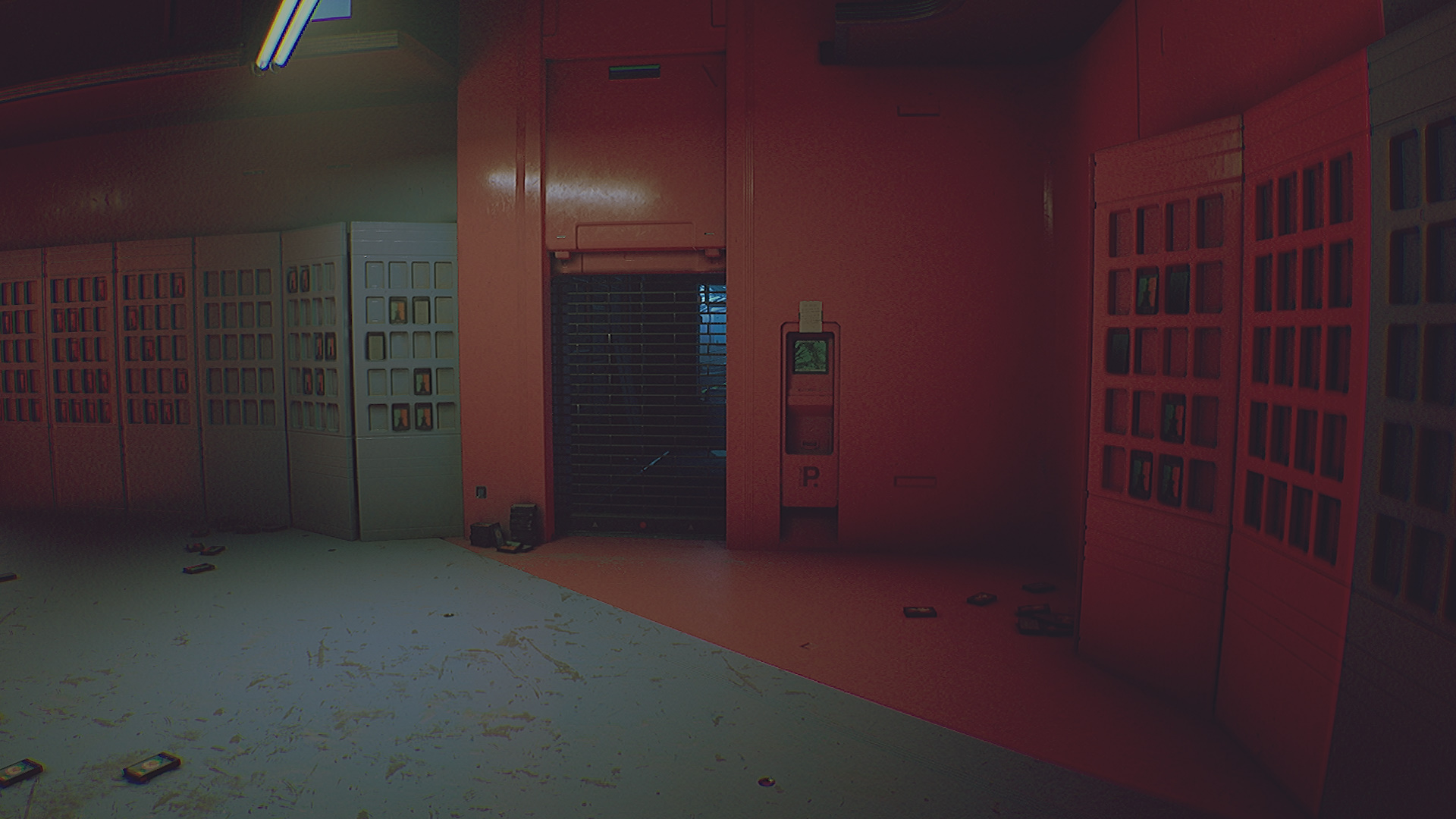 Когда робот уйдет, выйдите в коридор и следуйте в левую сторону. Вы окажетесь в холле с фонтанами и рыбками. Войдите в магазин видеопроката GALAXY VIDEO справа. Пройдите к в правый дальний угол и увидите закрытые рольставни. Прочтите записку. В ней говорится, что, если рольставни барахлят, нужно перезапустить систему здесь, а после открыть их из помещения службы безопасности в задней части МЕГАЗОНЫ.