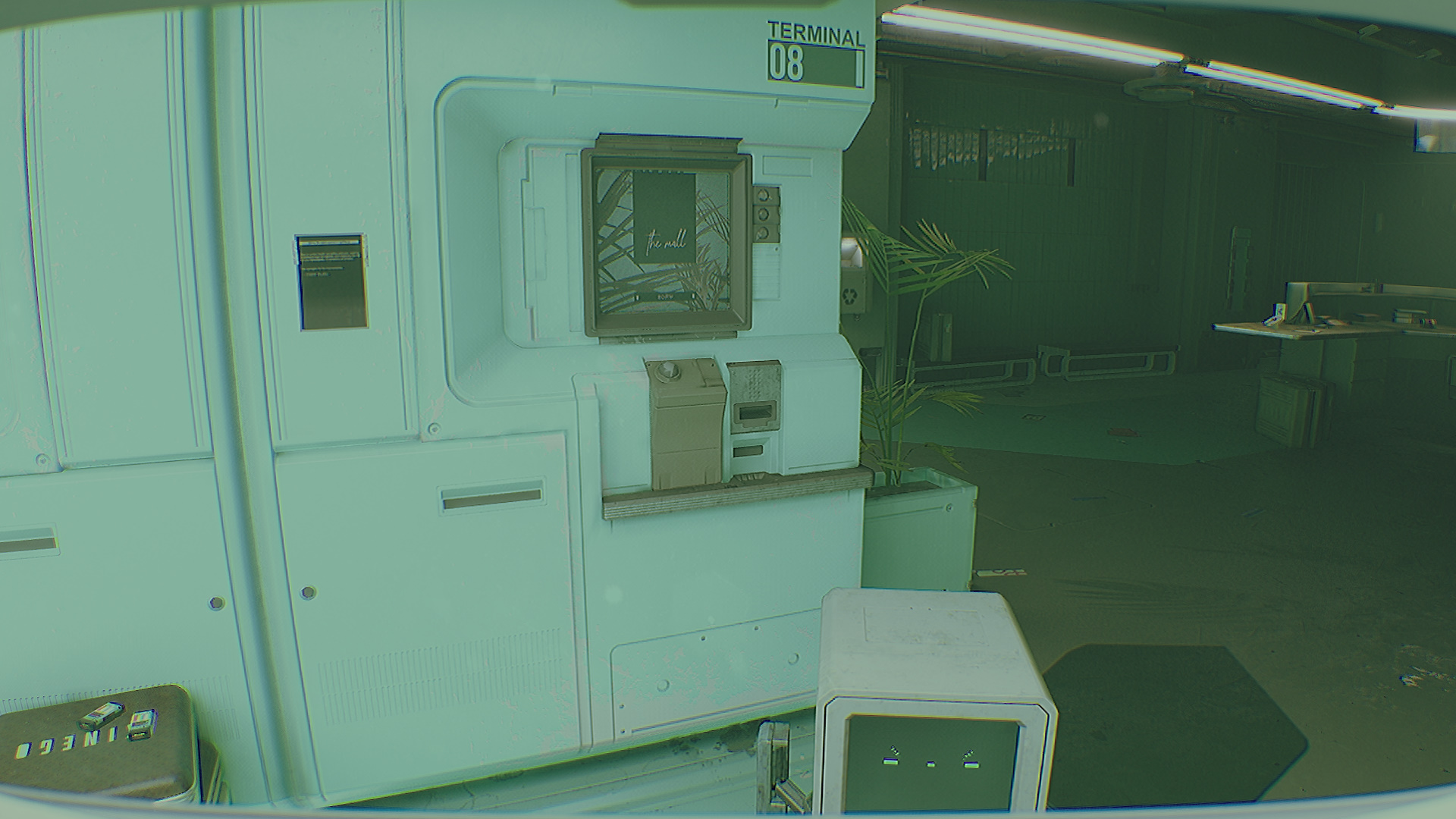 Идите вперед, внутрь торгового комплекса. В самом начале вас встретит робот АК. Он подойдет к терминалу 08 и предложит пройти процедуру регистрации. На ресепшне есть документ, в котором говорится о необходимости тестирования «Смотрителя», которого можно получить в «О’Нил Электроникс». Там же есть батарея, которая даст 3 заряда ИПК.