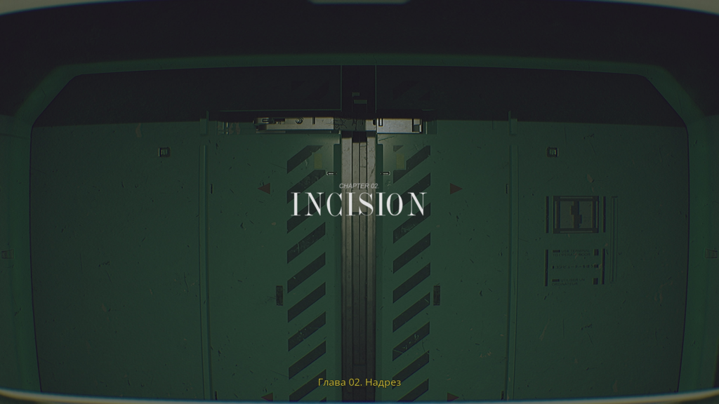 Осмотрите терминал слева, нажмите на экране «Войти». Введите номер с пропуск. Если забыли, посмотрите на грудь персонажа. После рекламного видеоролика с экрана начнут подниматься рольставни, а в лифт спрыгнет робот. Бегите от него прочь. Можете спрятаться под столом справа. Там же справа есть точка доступа для сохранения.