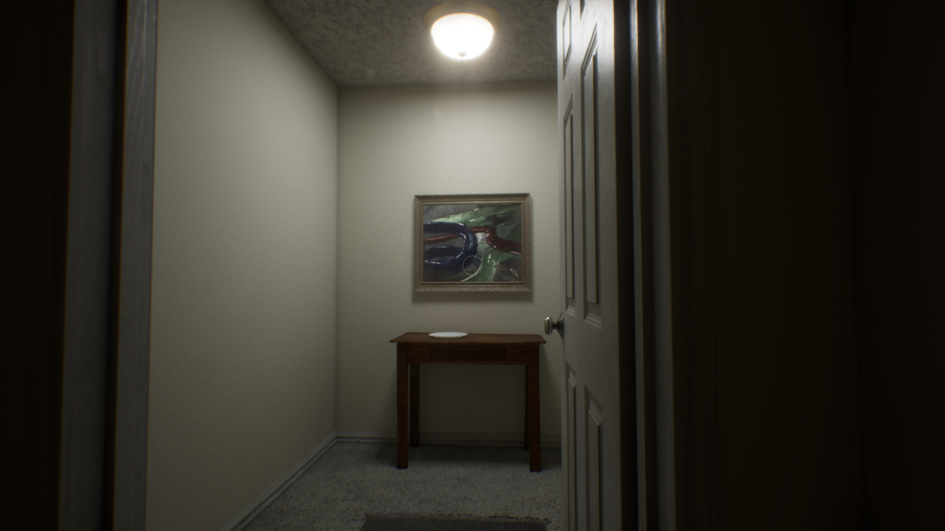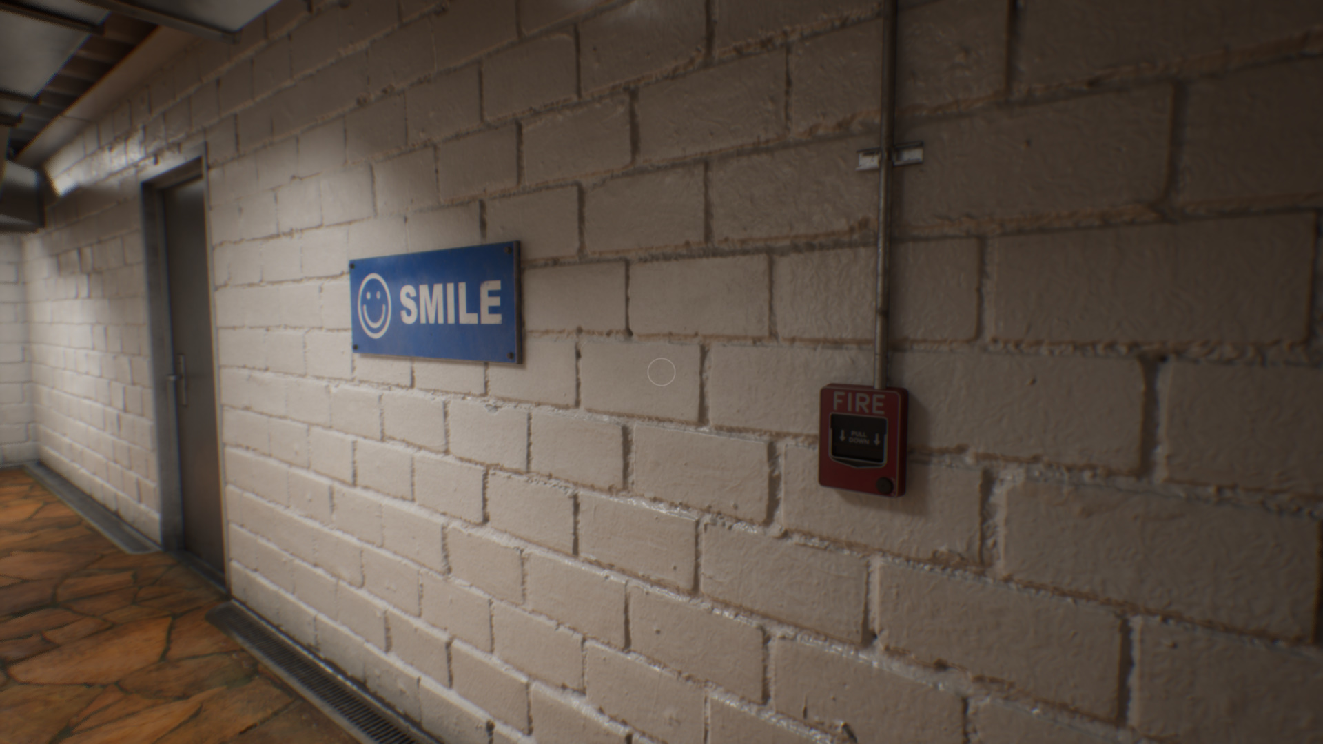 Вскоре вы попадете в зацикленный коридор. Чтобы выбраться, нажмите на сигнал пожарной тревоги, взаимодействуя с кнопкой на стене. Затем откройте любую дверь и увидите новый коридор.