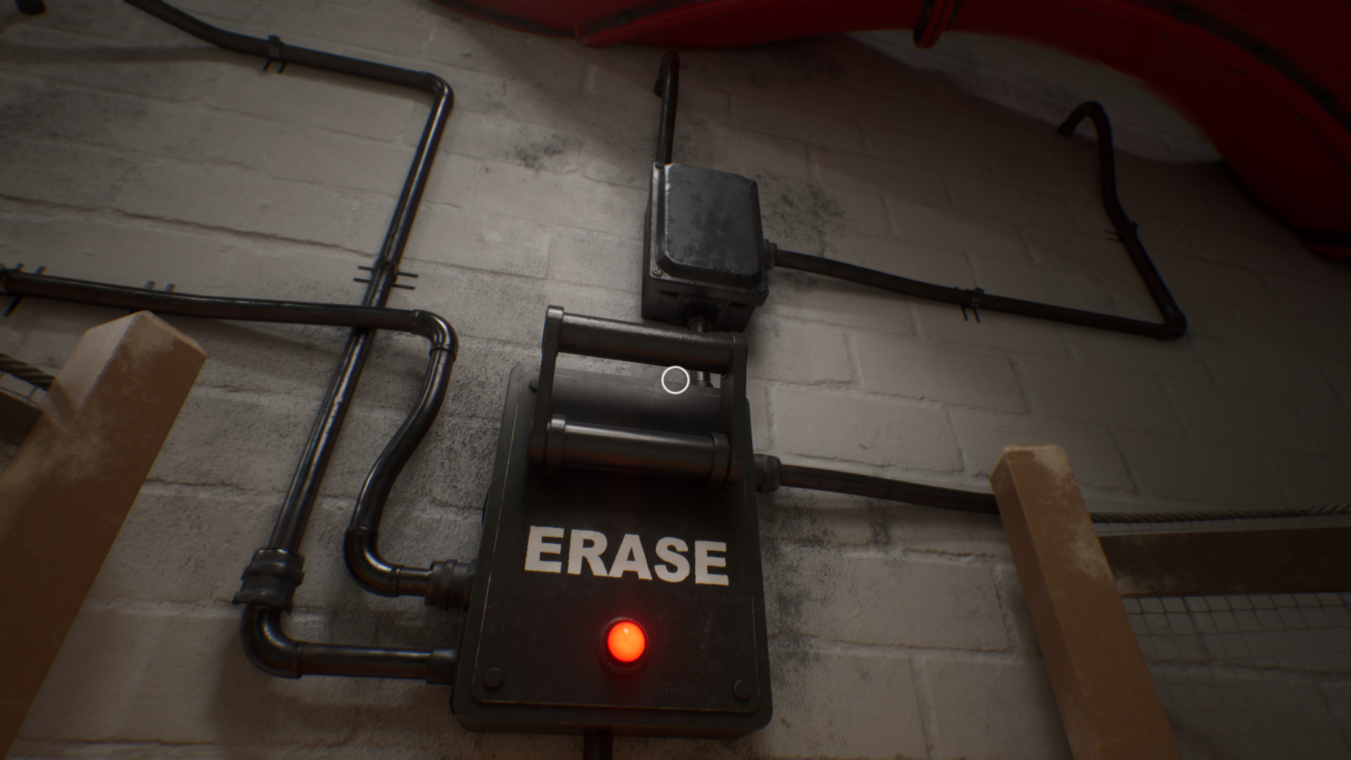 Так вы подадите питание на дверь Play Palace. Оставьте свет в лампе справа, над большим грибом (или деревом). Можете также активировать рычаг ERASE справа от него, чтобы продолжить движение на одну из секретных концовок.