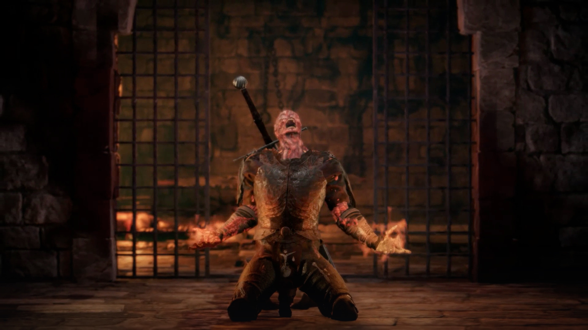 Спуститесь еще ниже по ступеням в другой стороне от лучника, который вам помог, и в камере слева обнаружите мини-босса Пылающее чучело. Чаще ставьте блок и используйте зелья исцеления. В награду получите записку и мощный палаш.