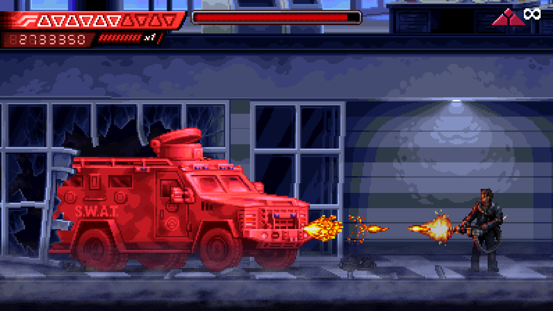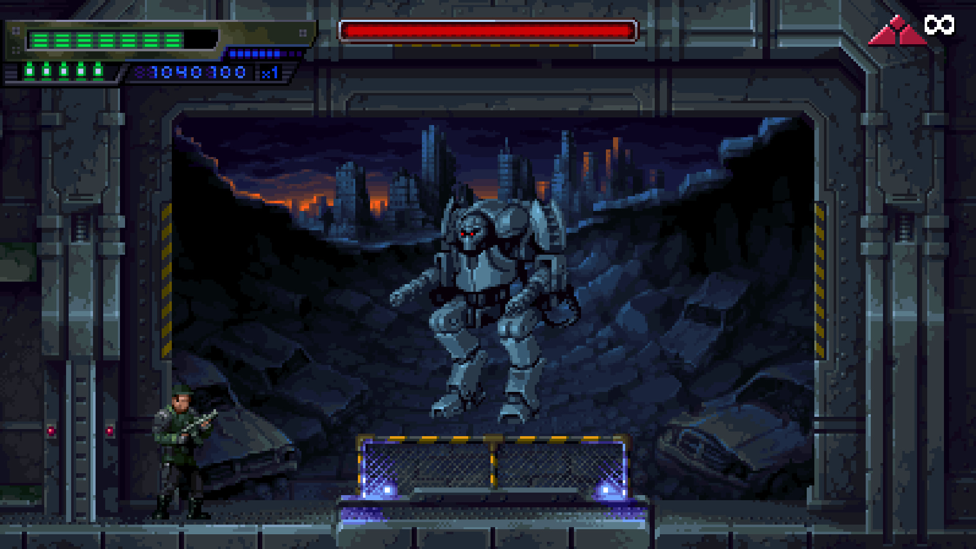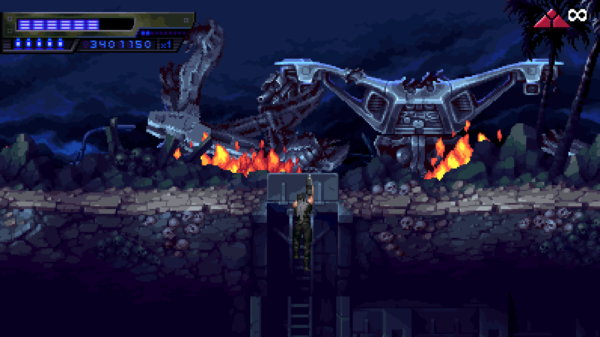 Перед стартом новой игры вам предложат выбрать желаемый уровень сложности для прохождения Terminator 2D: NO FATE. Так, на самом легком у вас будет бесконечный запас «жизней», в то время как на двух остальных (есть еще и разблокируемый четвертый!) будет лимит, и в случае потери всех жизней придется начинать все заново.