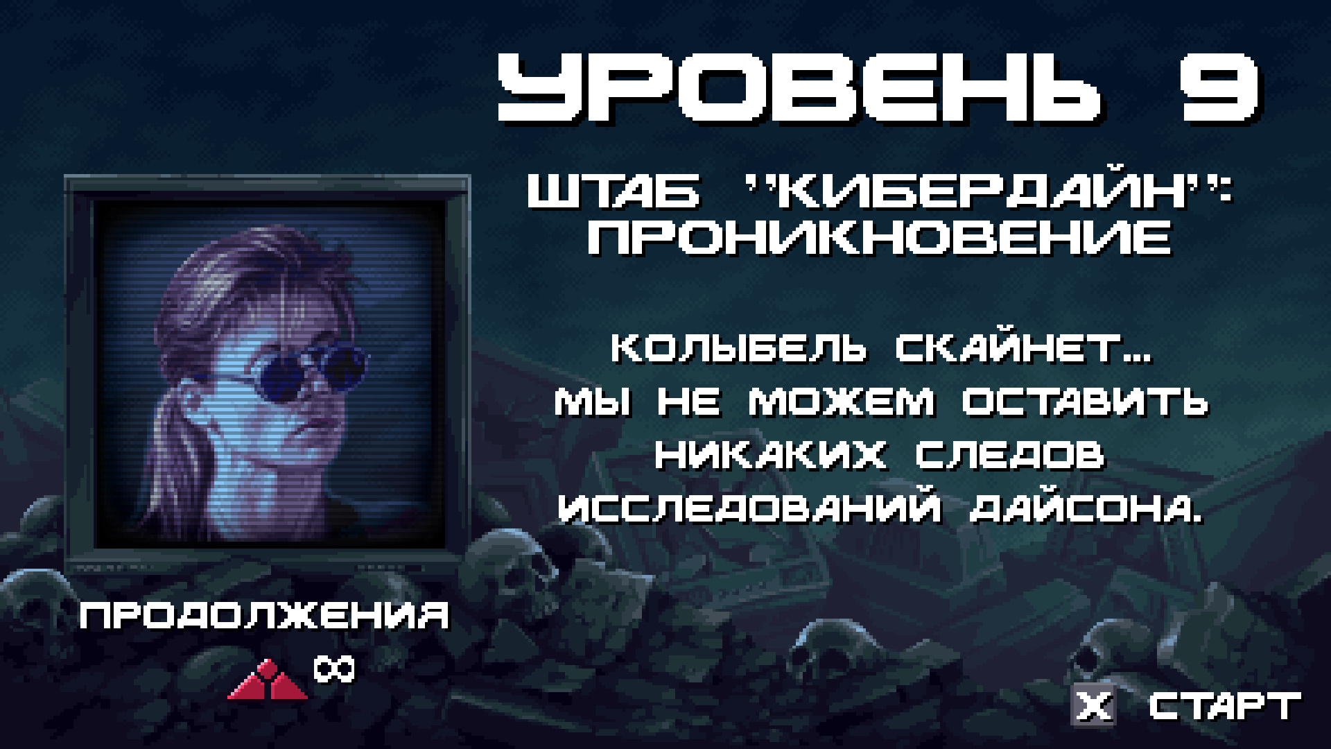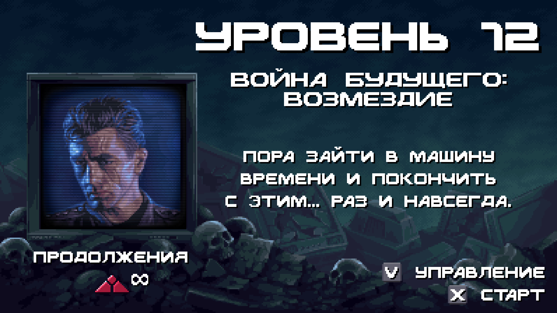 Сюжетный режим Terminator 2D: NO FATE состоит из 12 уровней, при этом есть еще 3 секретных локации, которые открываются при выполнении определенных условий