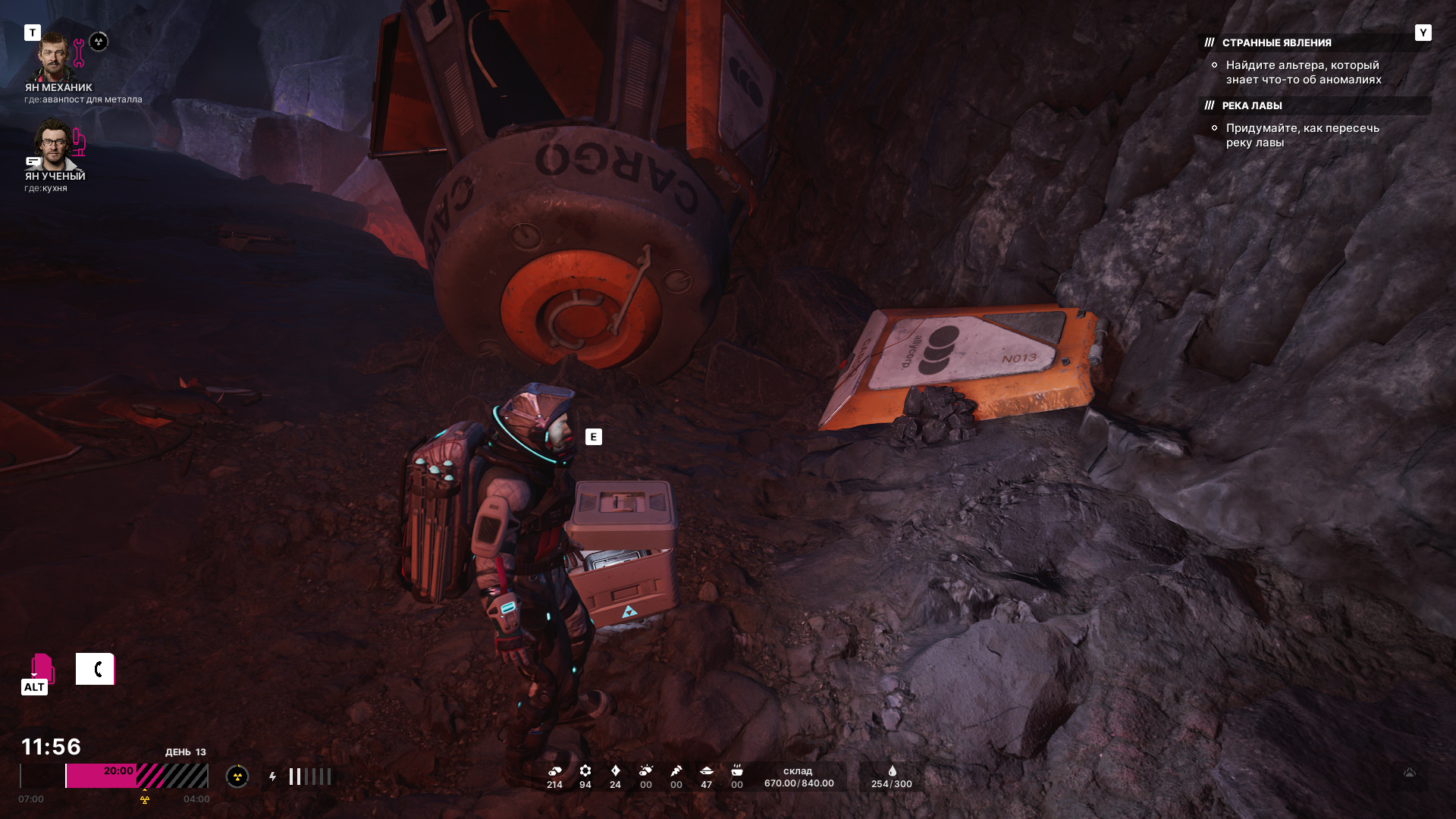 Поговорите с первым Альтером (за его создание получите достижение «Вдвоем»), скажите, что он в лаборатории, чтобы понизить тревожность и раздраженность. Будьте откровенны с ним и скажите, что вы бы его не пробудили. Если не можете отправиться в путь, убедитесь, что органика не застряла на кухне в баке для приготовления каши! Или в мастерской, если вы вдруг заказали кирку. Если она там, либо отмените очередь, либо завершите ее и добудьте органику заново. В общем, если видите, что какой-то ресурс указан как, к примеру, 120+120, это значит, что второе число — ресурсы, размещенные на каких-то рабочих станциях базы, и их нужно либо забрать, отменив очередь, либо потратить.