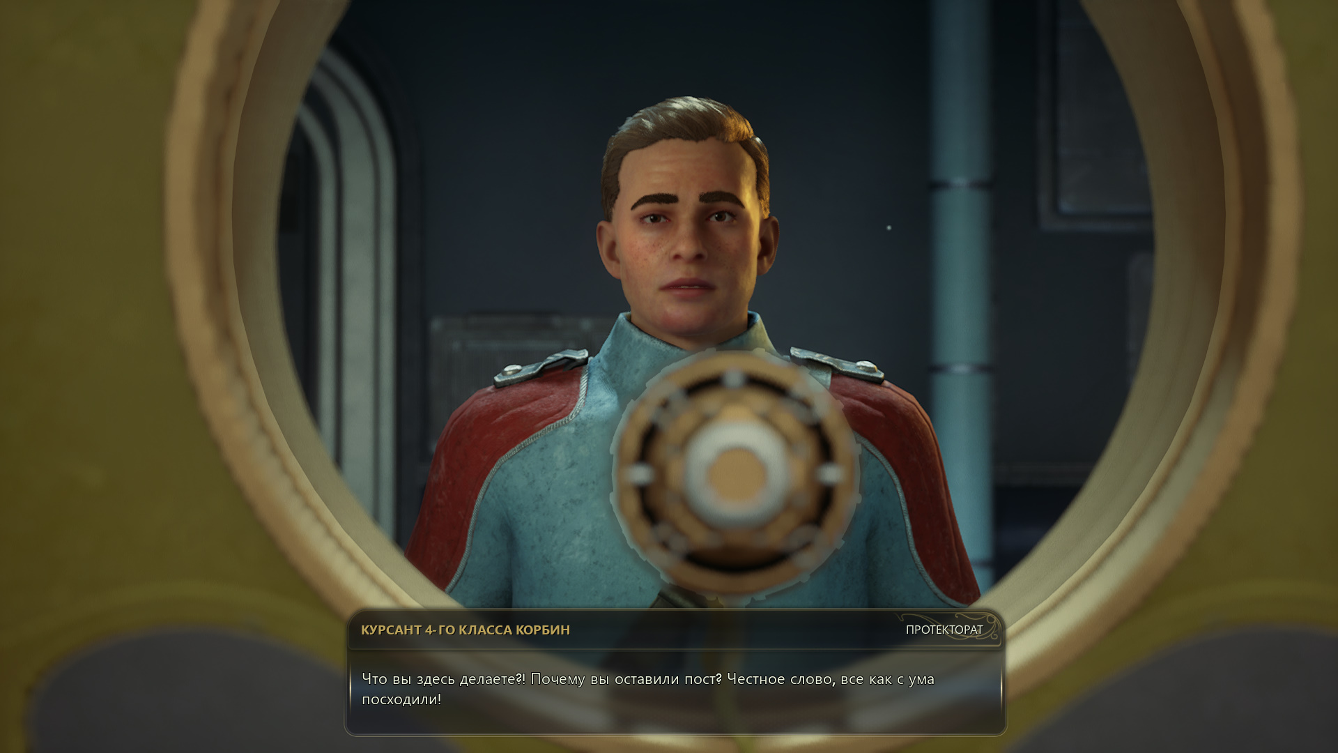 Вставьте удостоверение командира в переговорное устройство, чтобы начать инструктаж. Пообщайтесь с Августиной де Врис, с которой связана текущая миссия. Во время этого разговора у вас будет множество возможностей использовать свои качества, навыки и предысторию. Есть варианты для профессора, стража порядка и разнорабочего. Навыки Ближнего боя, Взлома и Наблюдательности. Ни один из вариантов диалога в данном случае не имеет долгосрочных последствий, но стоит привыкнуть к такой частоте проверок навыков. В The Outer Worlds 2 они встречаются гораздо чаще, чем в оригинале.