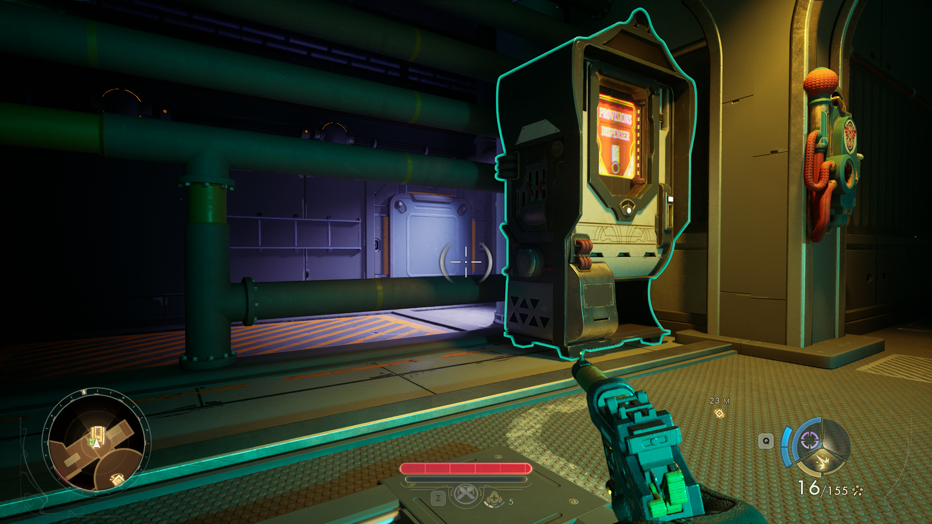Один из охранников стоит у компьютерного терминала. Взаимодействуя с ним, можно извлечь ключ-карту доступа к насосной станции, если у вас есть навык Взлома 1-го уровня и запасной обходной шунт. Она пригодится позже. Разобравшись с двумя охранниками, продолжите движение по коридору, но не торопитесь. В соседней комнате есть еще один охранник, который убирает туалеты.