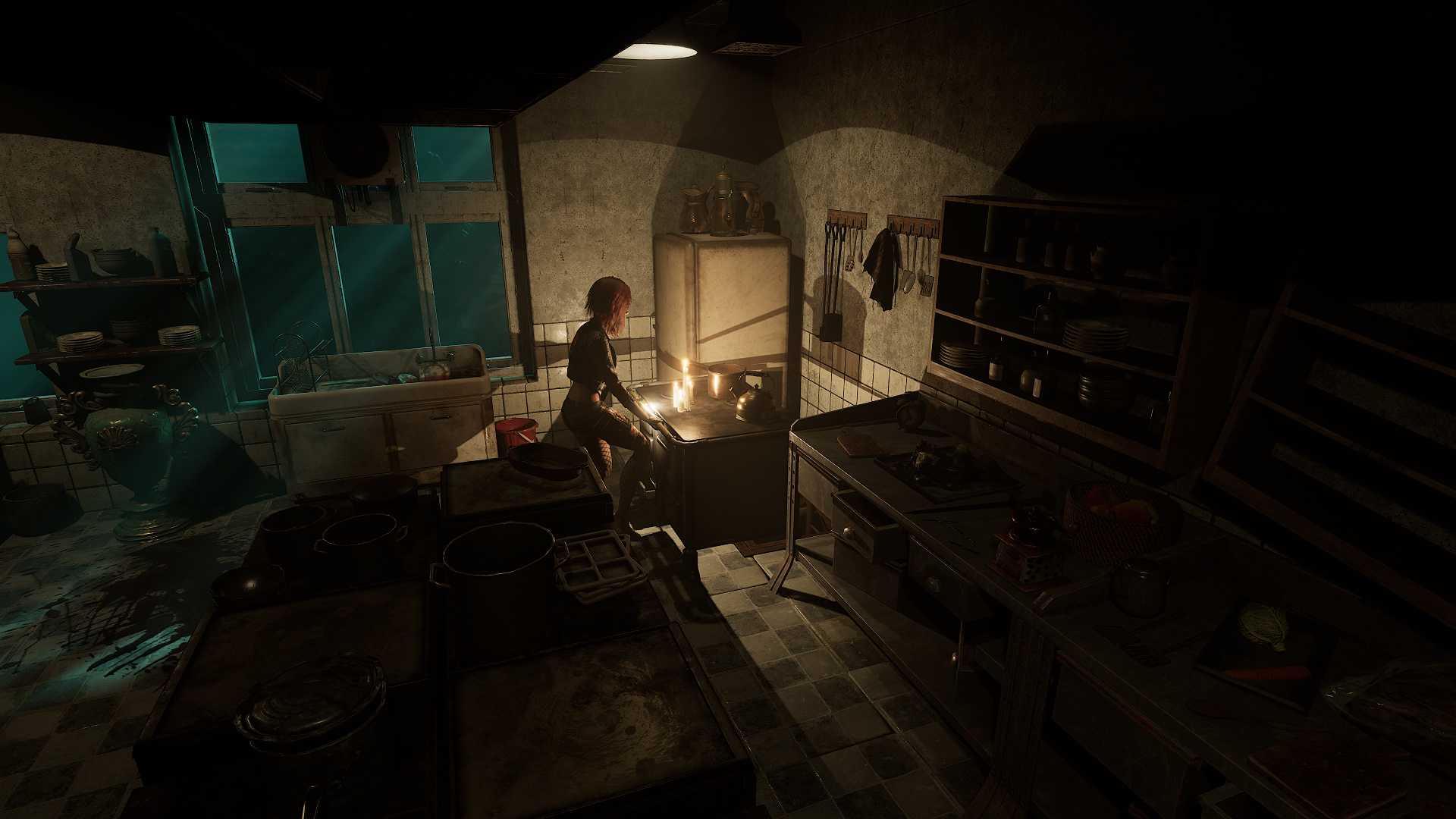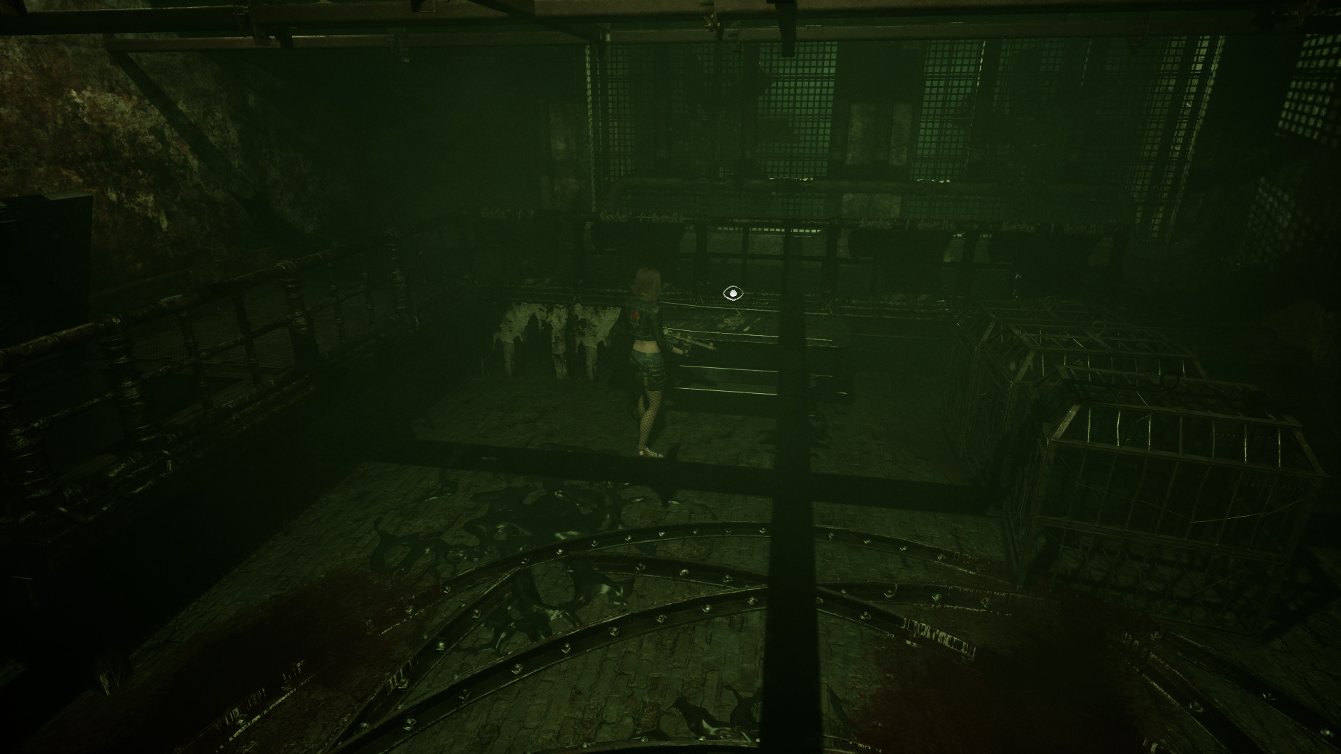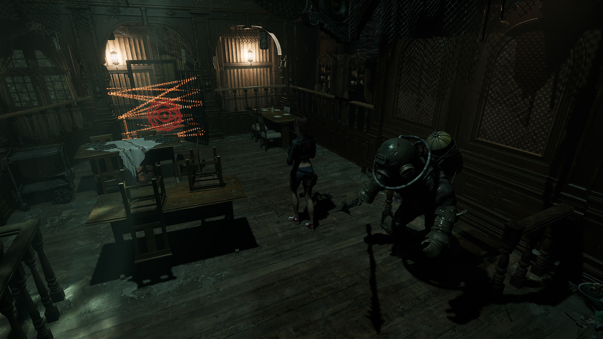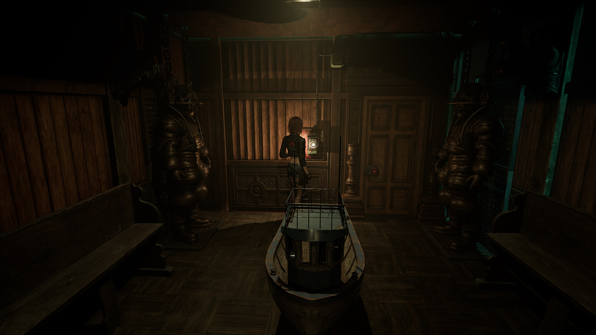 После того как все 4 лампочки над картинами будут гореть одновременно, пройдите через ворота снизу. Разбейте урны, подберите гвозди, затем возьмите ручной домкрат. Взаимодействуйте с водолазным костюмом и возьмите металлическую пластину (глаз). Когда попытаетесь уйти, монстр в водолазном костюме оживет, и вам придется его убить.