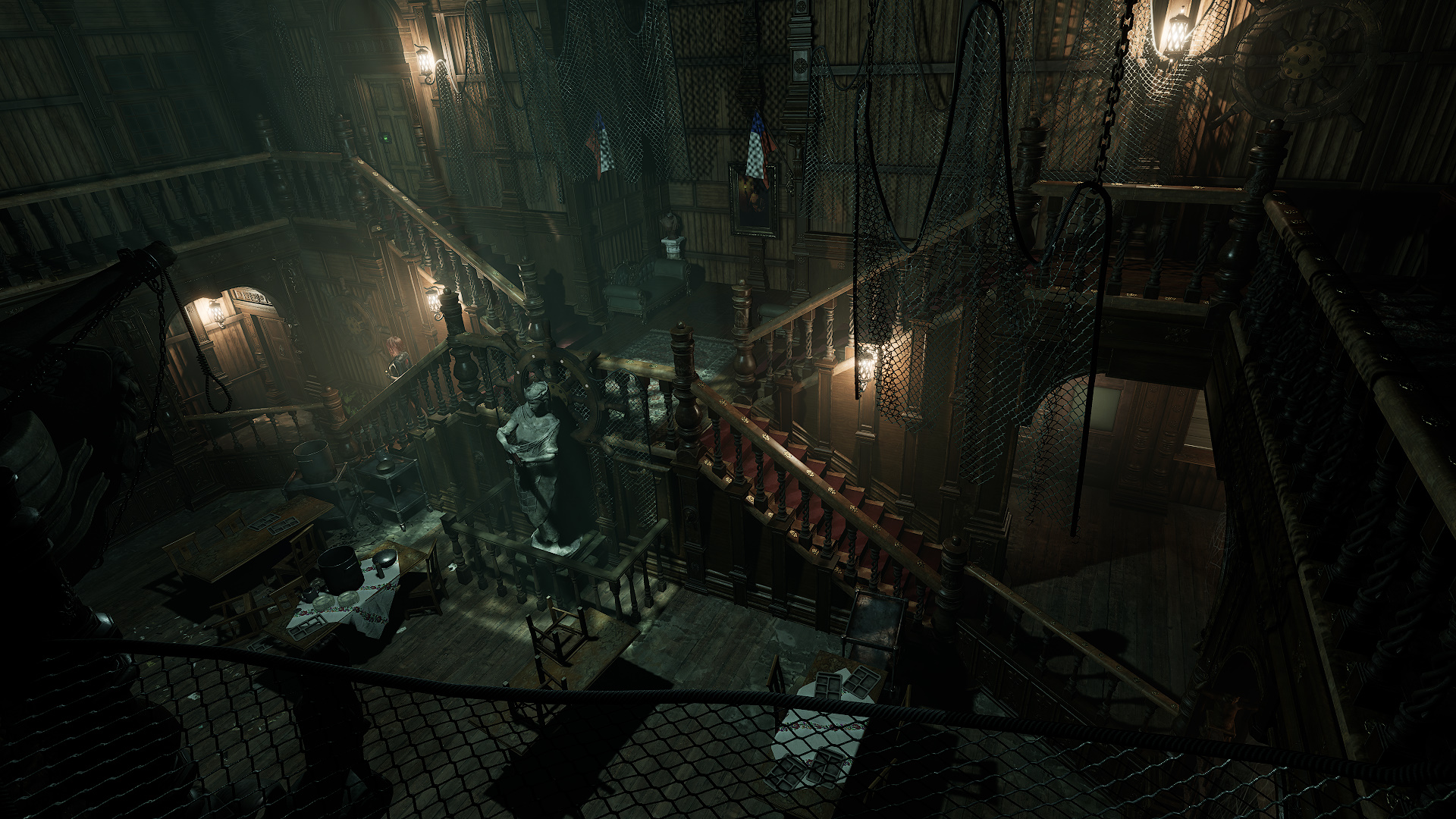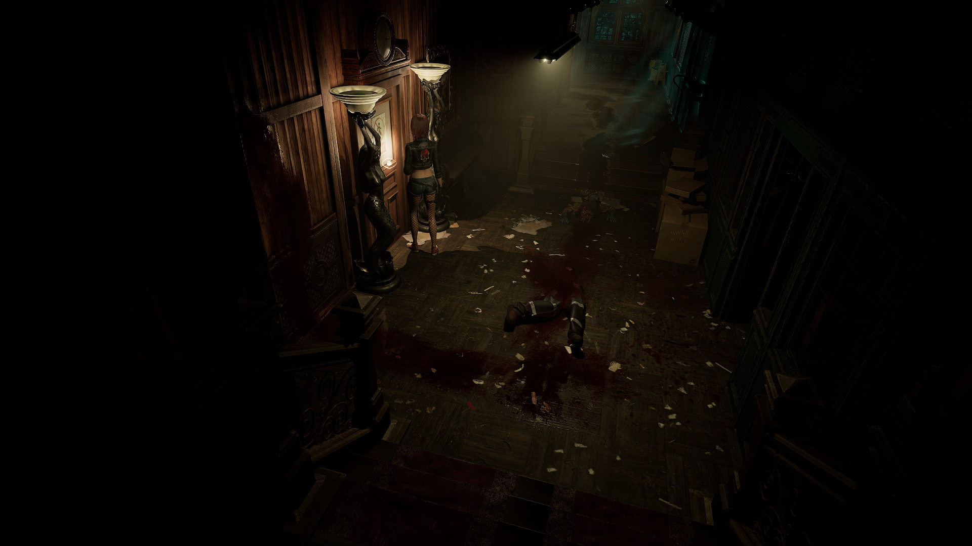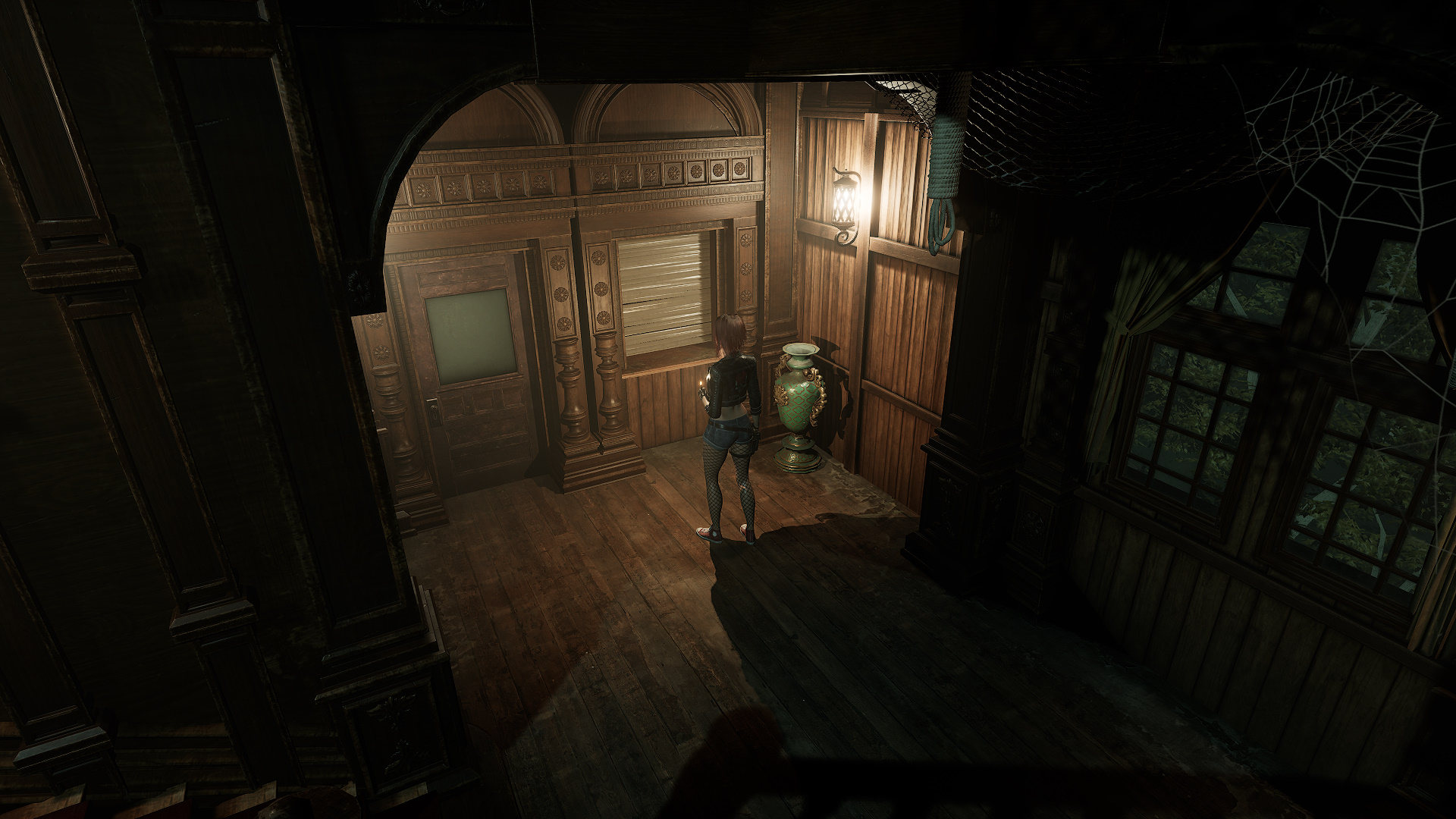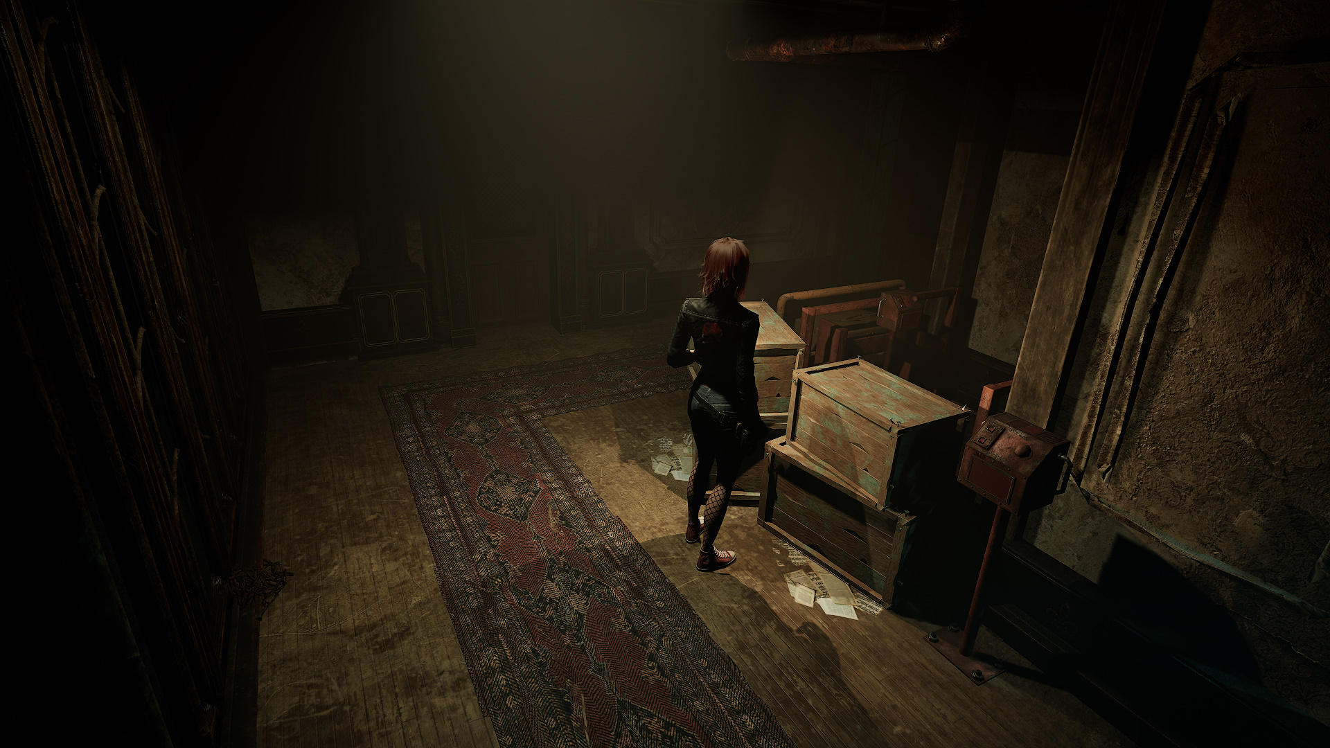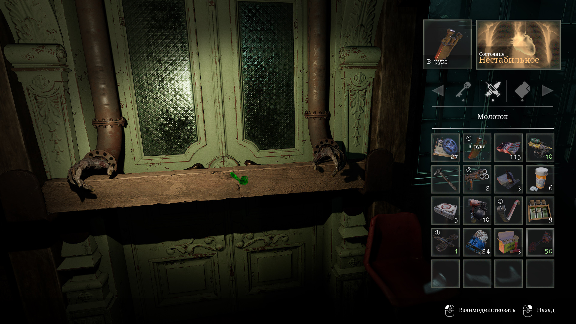 Перейдите на другую сторону комнаты, достаньте повидон из шкафчика и вернитесь в Нижнее крыло. Будьте осторожны с врагами нового типа. Вооружитесь монтировкой и разбейте деревянные ящики, блокирующие лифт. Можете спуститься в подвал.