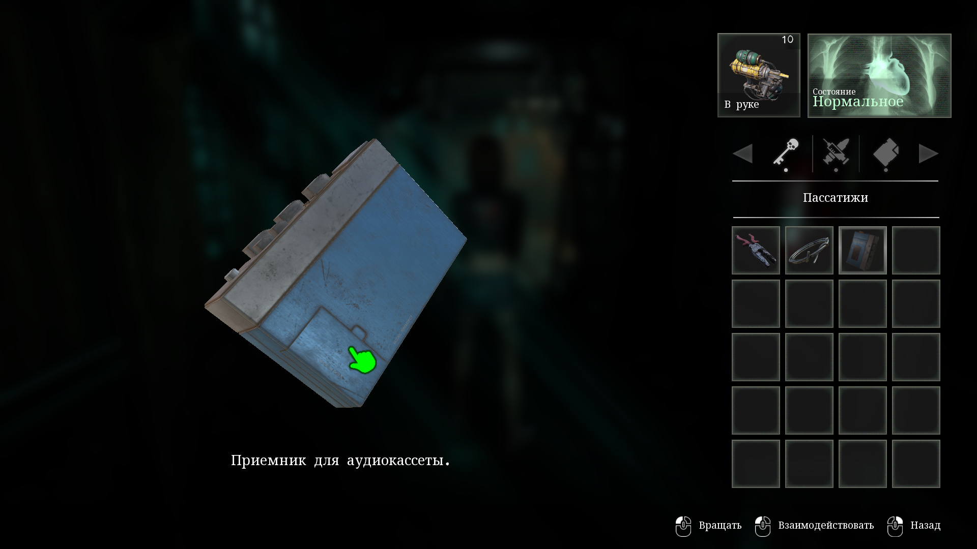Вернитесь в Верхнее крыло и возьмите пробирки с кислотой в самом конце коридора. Взаимодействуйте с кассетным плеером и достаньте батарейки из-под задней крышки: