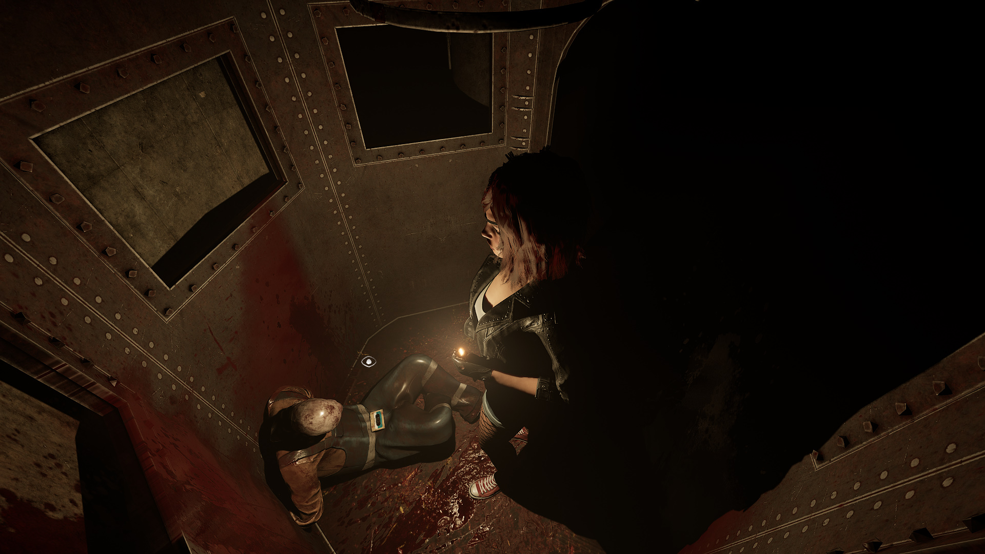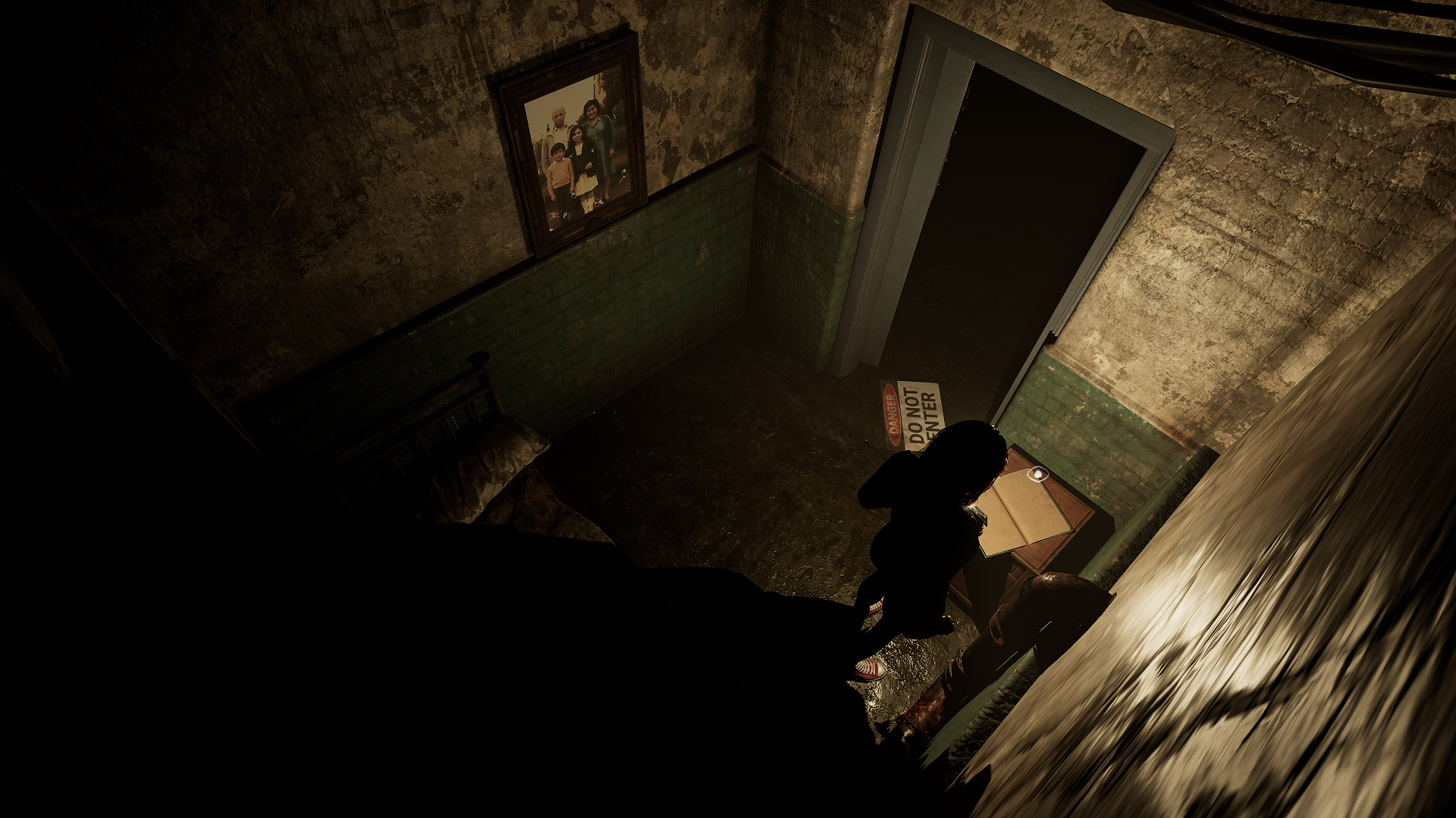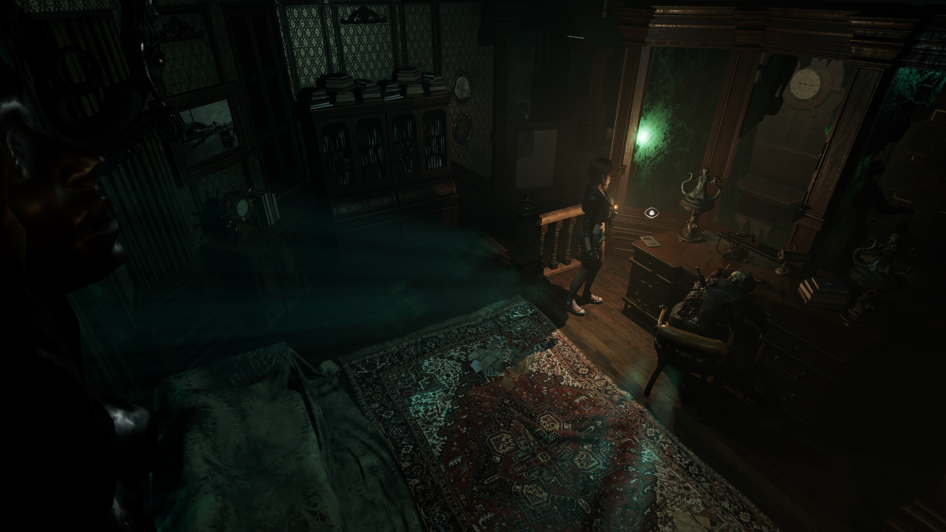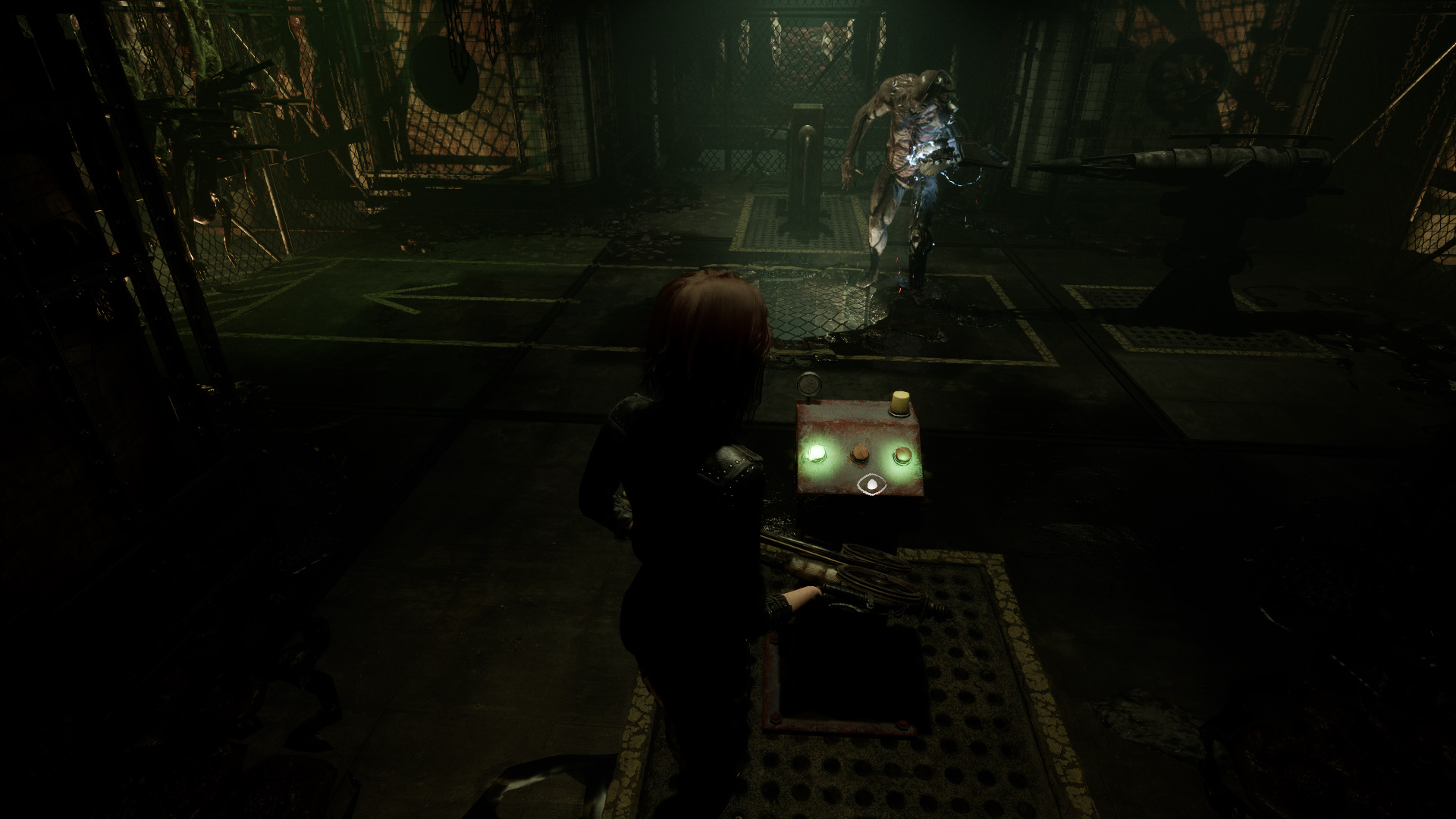 После кат-сцены выкрутите лампочку из настольного светильника и используйте гвоздодер на двери, чтобы выстрелить в кнопку на другой стороне: