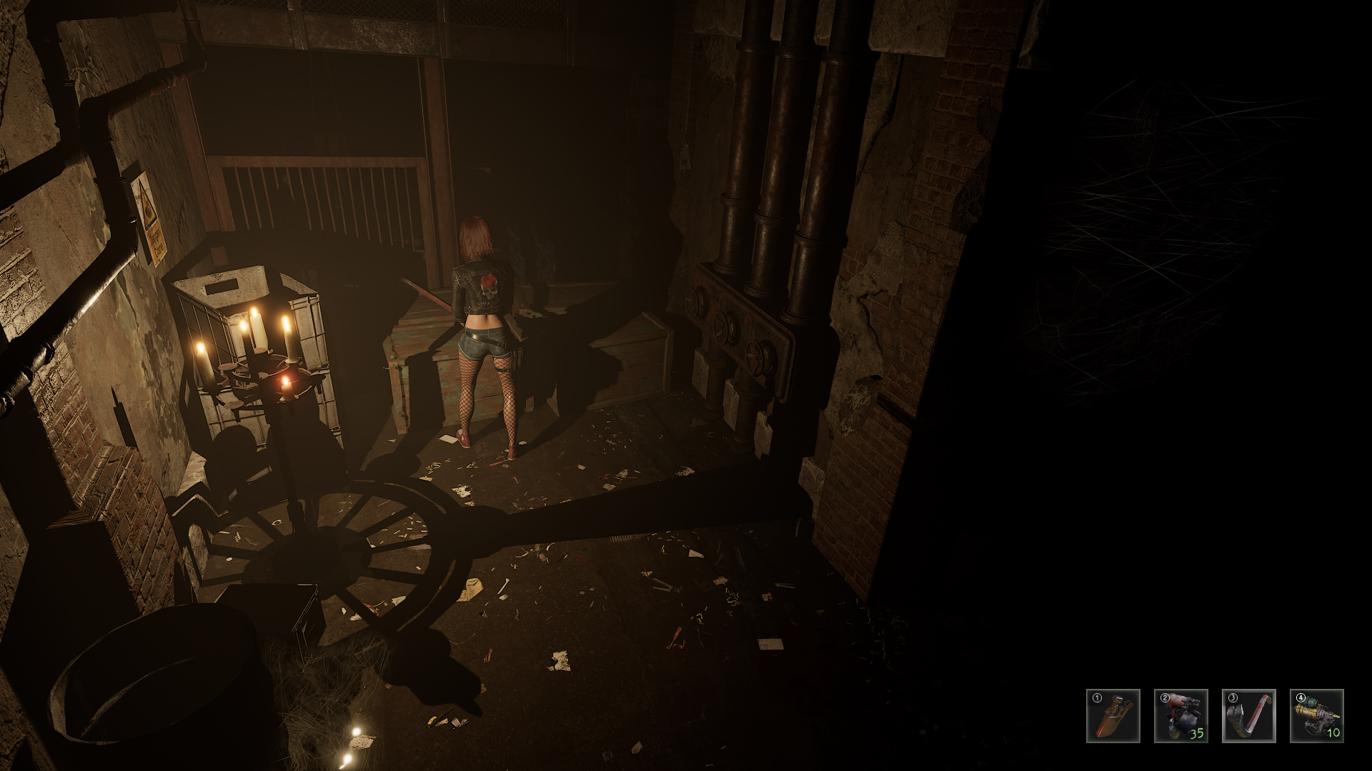 Возьмите обезболивающие со столика у кровати и пройдите в соседний коридор. Идите в конец коридора, на себя (в направлении экрана). Позади вас появится враг, а весь свет погаснет. Быстро зажгите ближайшую свечу и убейте противника. Подберите гвозди, вооружитесь монтировкой и разбейте блокирующие путь деревянные ящики: