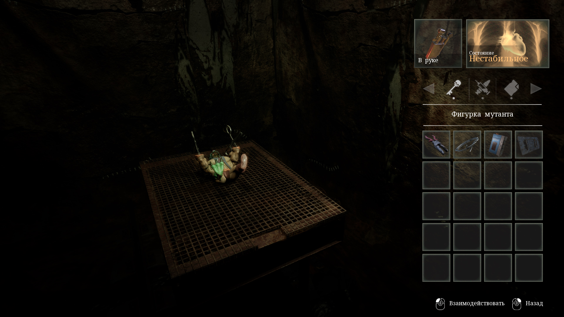 Бегите на другую сторону, уклоняясь от ловушек, и подберите обезболивающие. Спуститесь по лестнице, войдите в контейнер и положите фигурку мутанта на небольшой столик.