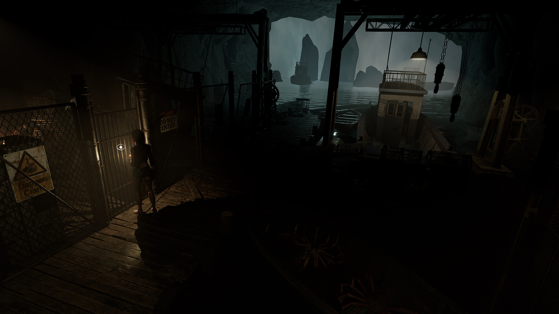 Выйдя из лифта, идите вправо по экрану и разбейте ящики. Пройдите вокруг причала, пока не появятся крабы. С этого момента они будут появляться и в других локациях. Уничтожайте крабов при помощи монтировки, чтобы экономить боеприпасы.