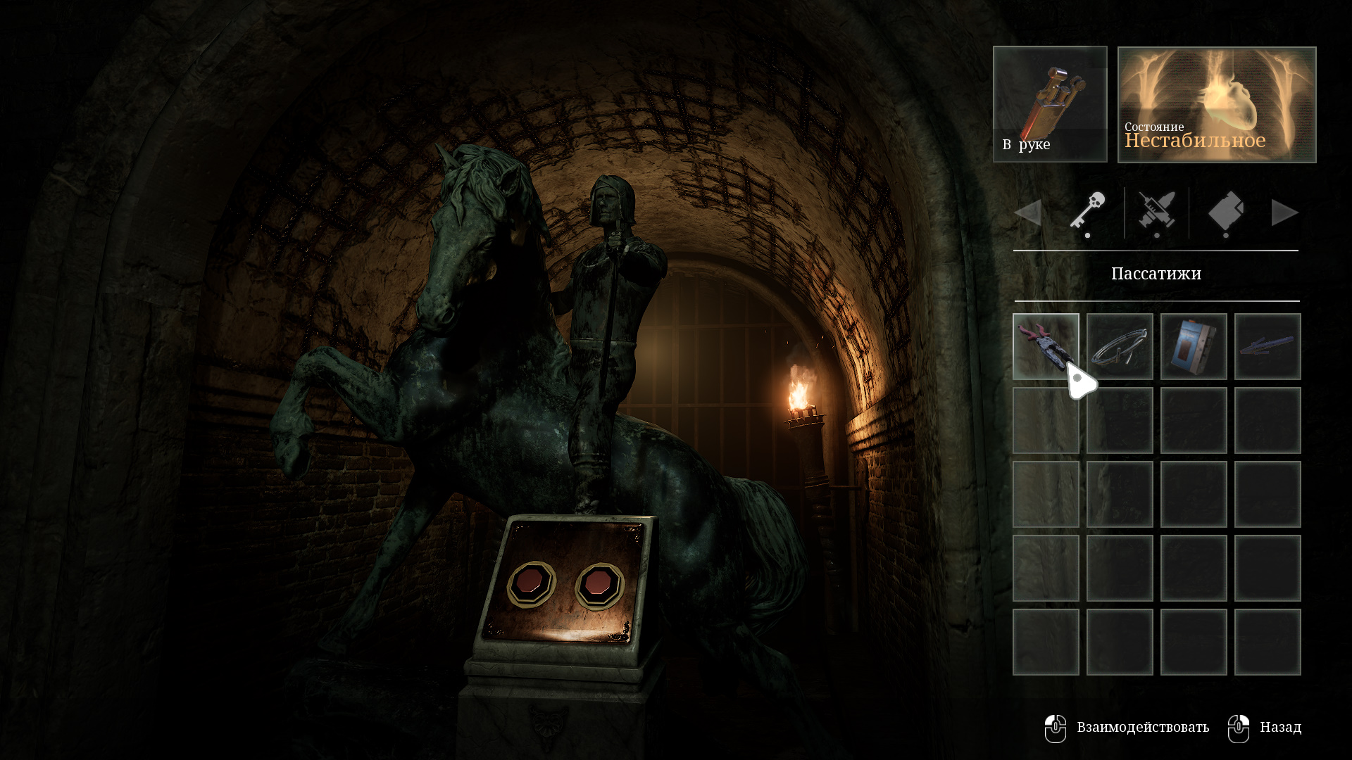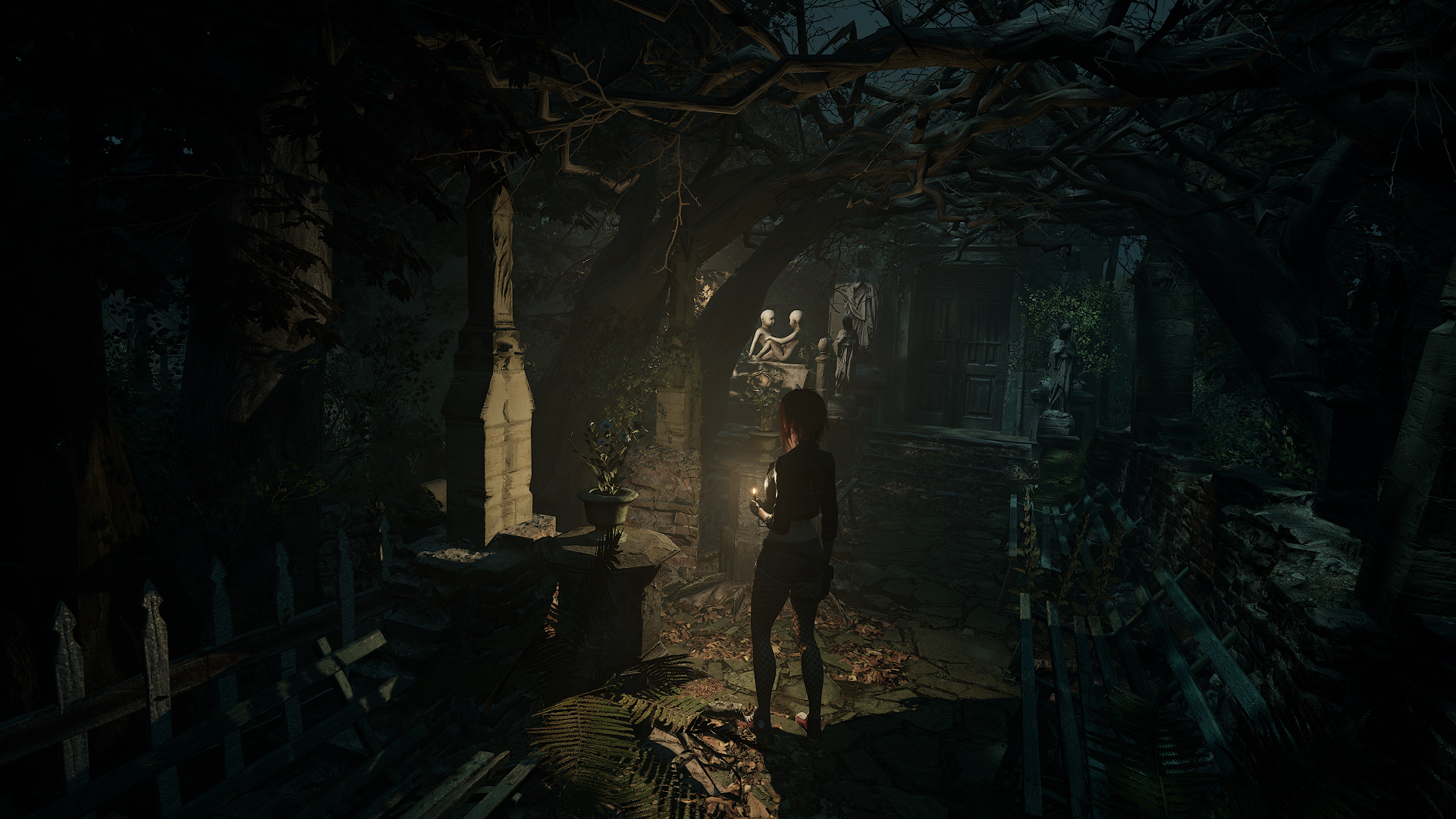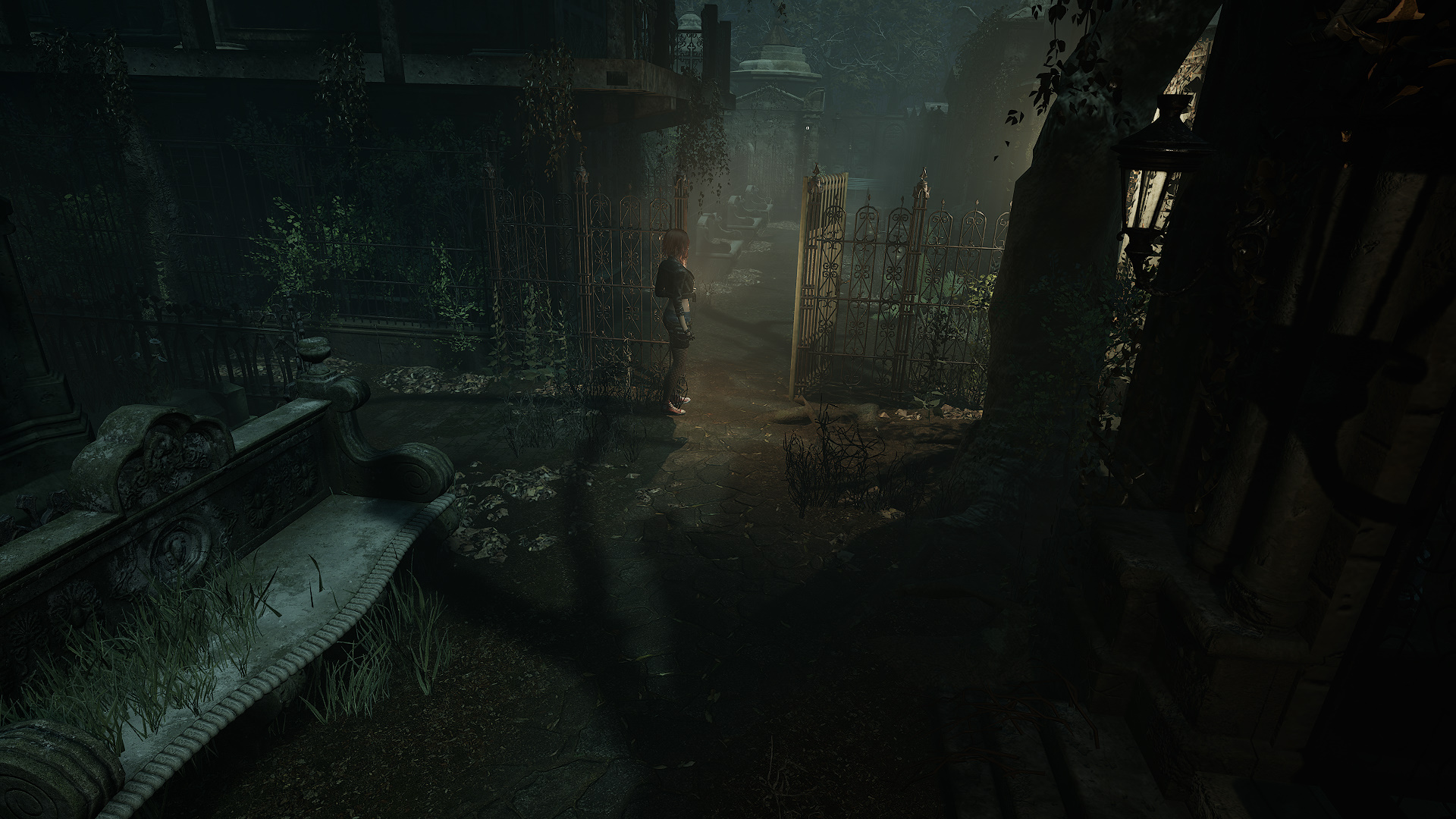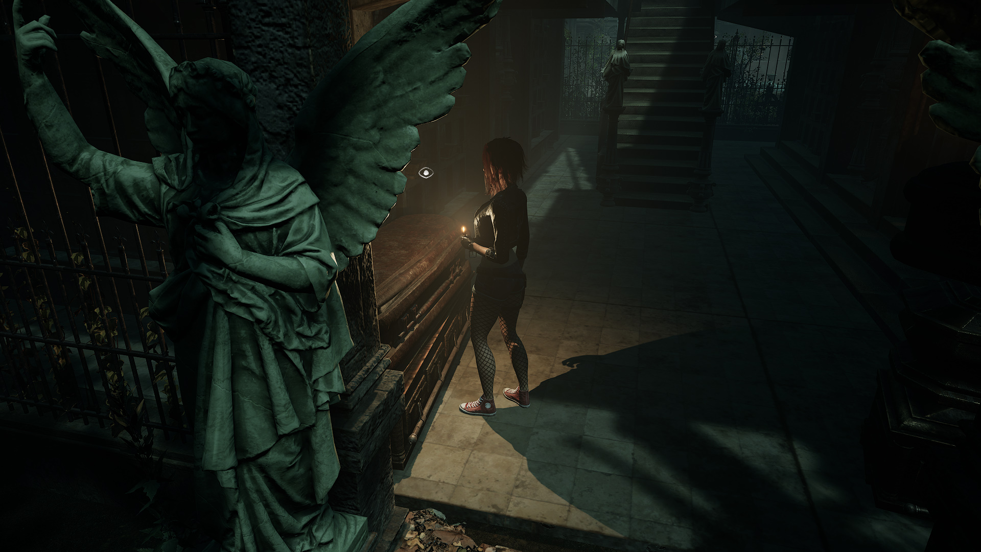 Обойдите могилу и нажмите на светящуюся панель, чтобы активировать лифт. Войдите в катакомбы. Следуйте по тропинке и зажгите свечи, чтобы разбить ящики. Войдите в комнату справа, чтобы найти старую фотографию. Продолжите движение по тоннелю, пока игнорируйте деревянную дверь справа и идите в конец коридора. Зажгите все свечи в комнате, а затем подберите гвозди и обезболивающие. Поднимитесь по небольшой лестнице и достаньте из гроба мраморный меч.