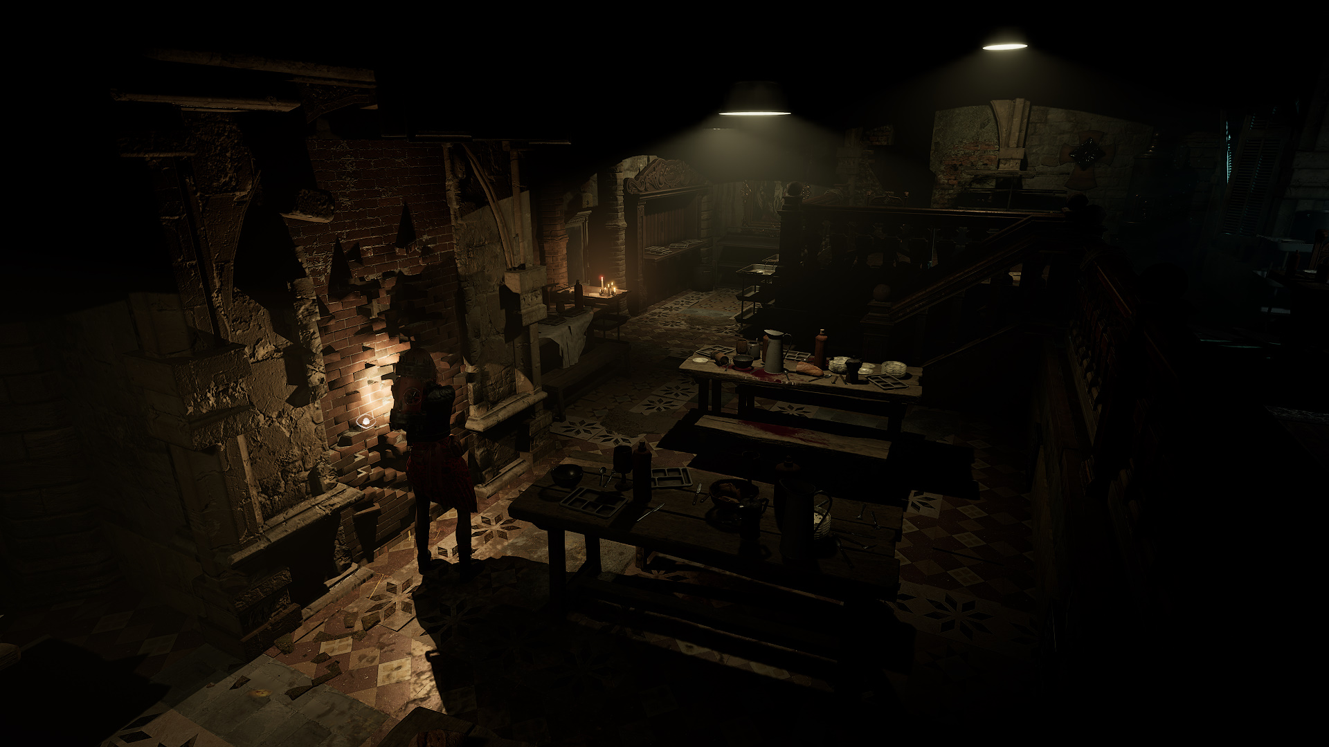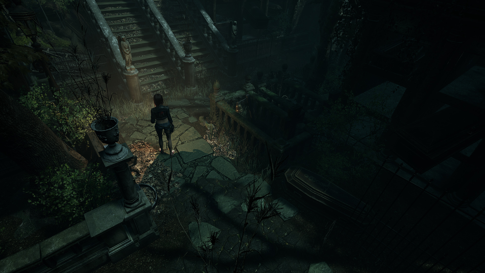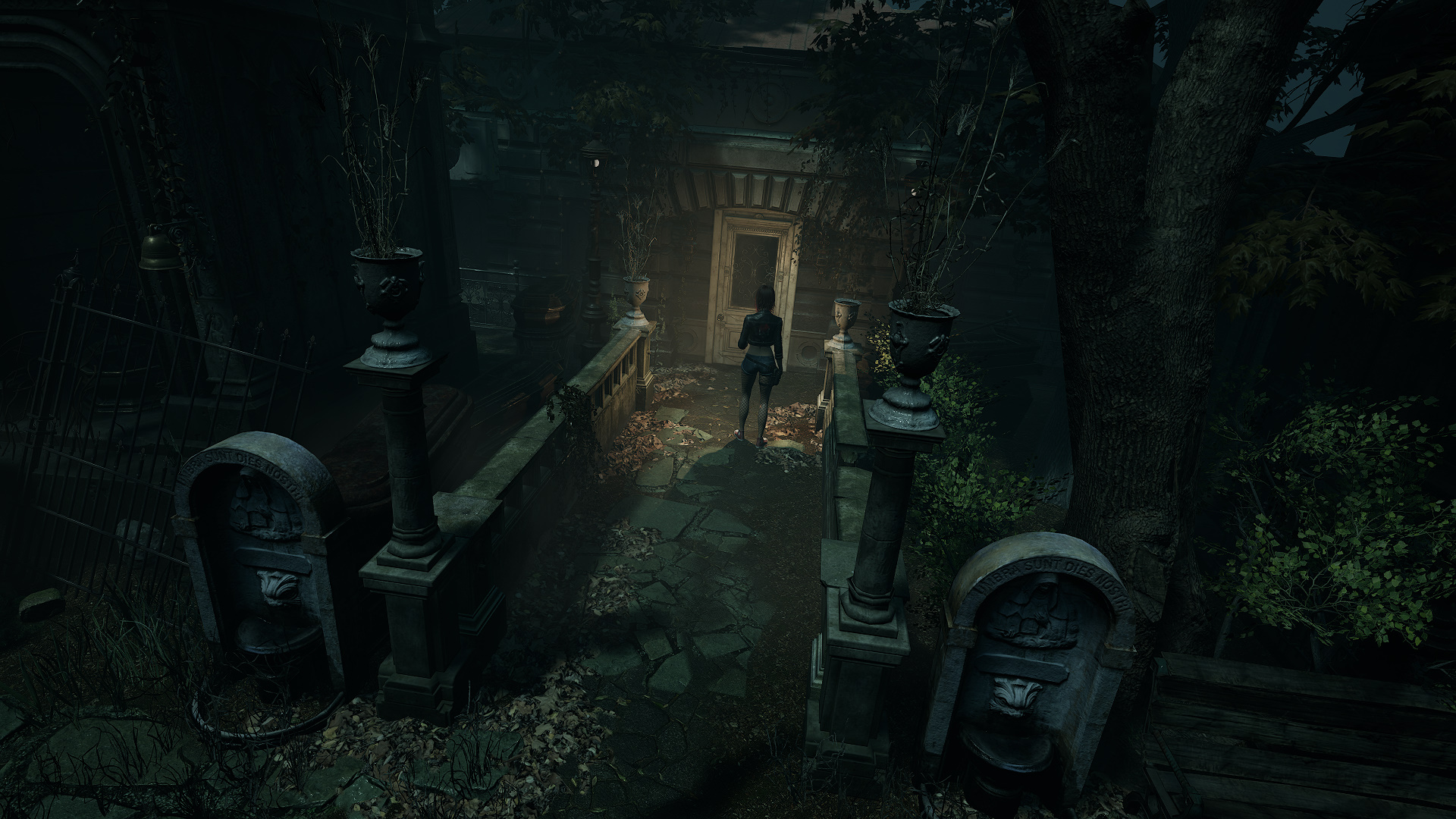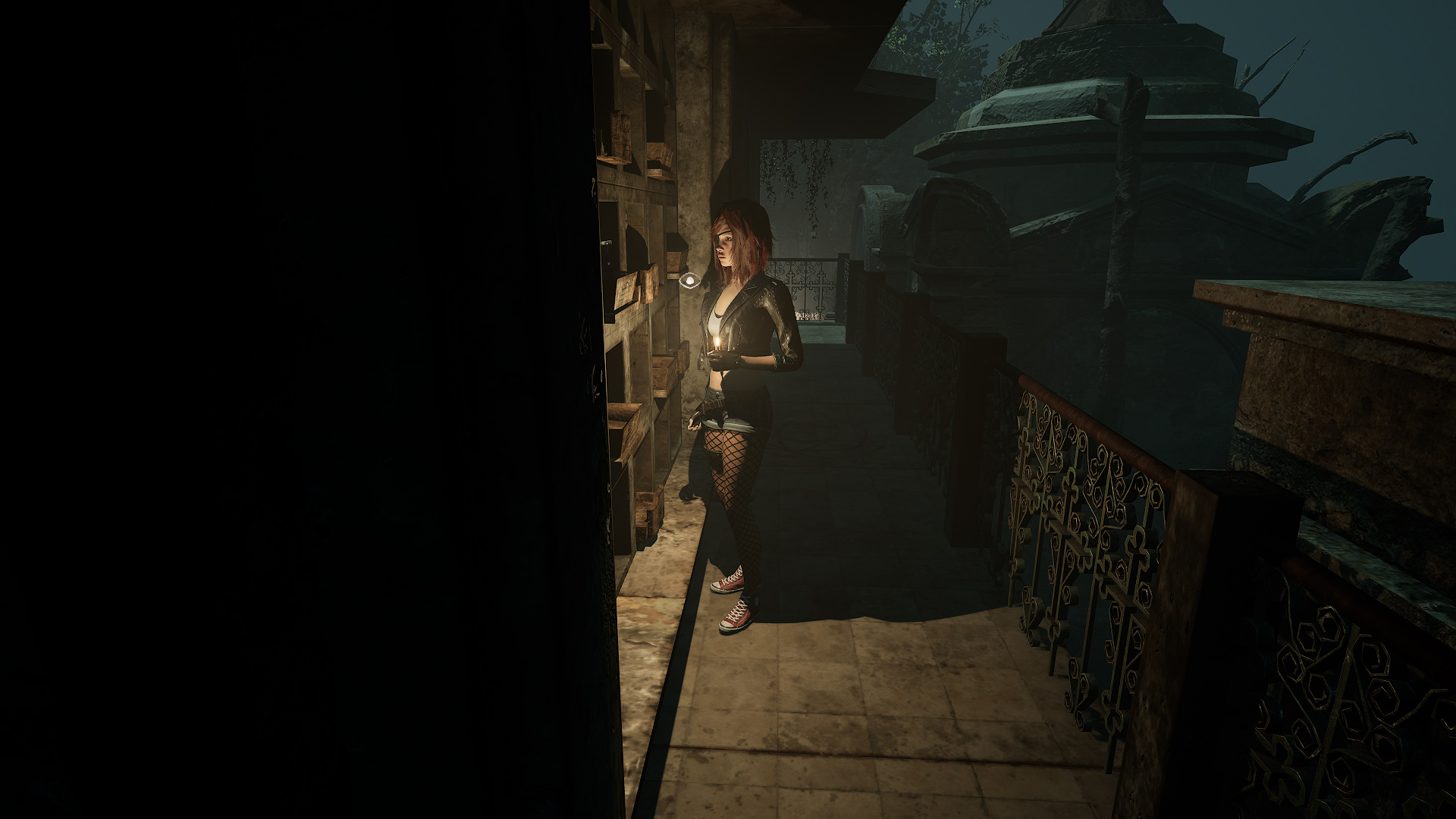 Обойдите могилу и нажмите на светящуюся панель, чтобы активировать лифт. Войдите в катакомбы. Следуйте по тропинке и зажгите свечи, чтобы разбить ящики. Войдите в комнату справа, чтобы найти старую фотографию. Продолжите движение по тоннелю, пока игнорируйте деревянную дверь справа и идите в конец коридора. Зажгите все свечи в комнате, а затем подберите гвозди и обезболивающие. Поднимитесь по небольшой лестнице и достаньте из гроба мраморный меч.