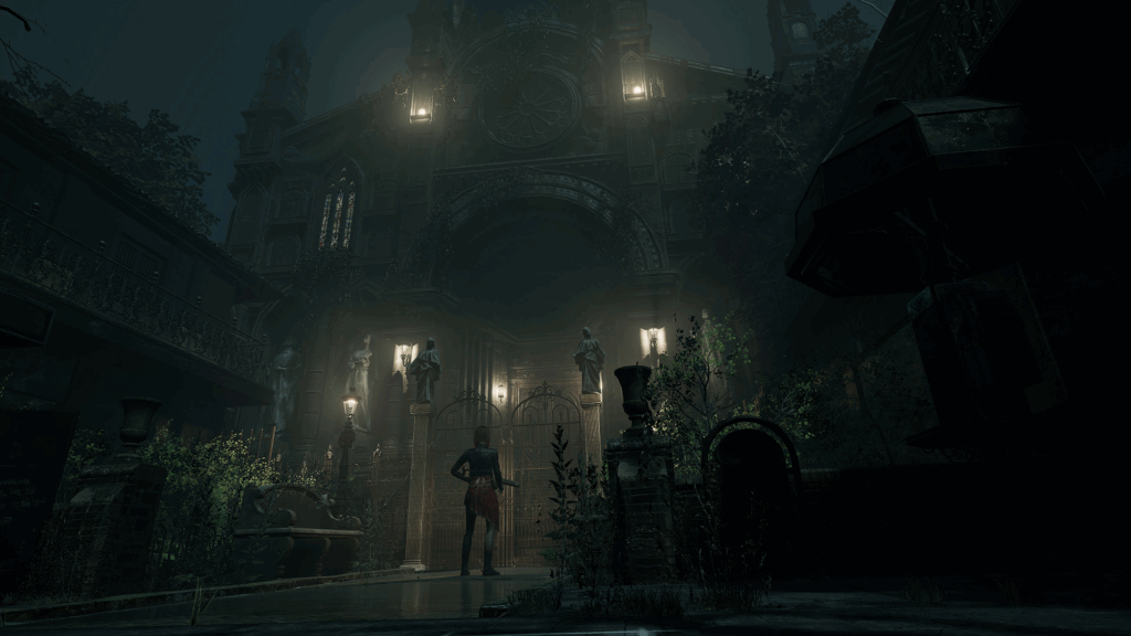 Поднимитесь на лифте и идите в правую сторону. Следуйте по балкону, затем поверните в небольшую нишу справа и разбейте урны. Продолжите движение по балкону и войдите в еще одну небольшую секцию по правую руку. Здесь появятся 3 зомби. Уничтожьте врагов, подберите патроны для дробовика и обезболивающие. Пройдите через мост и войдите в сакристию.