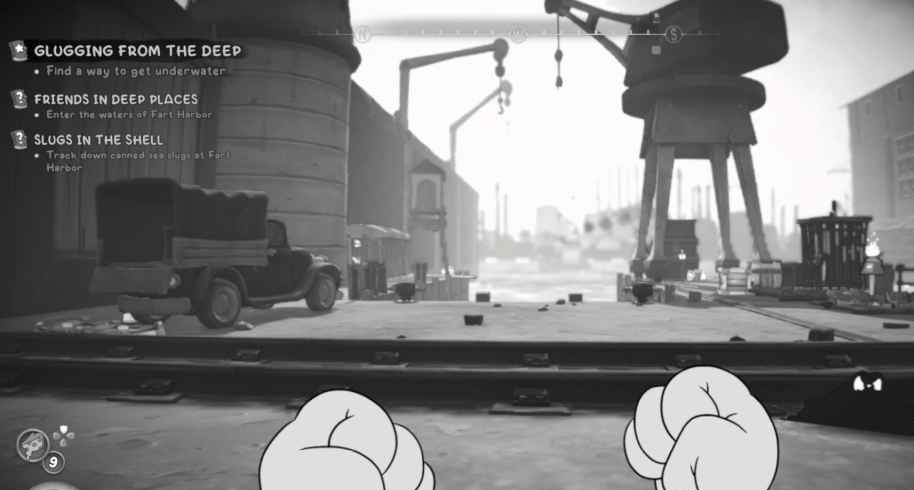 Добравшись до порта со спусками к воде (увидите, как уплывает субмарина), найдите банку морских слизней в контейнере с левой стороны.