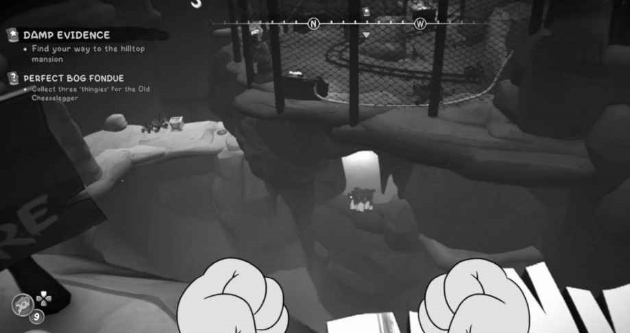 Собрав все три предмета, продолжайте задание до побега из укрытия сыровара. Возле причала можно обернуться и найти персонажа за зданием. Он сидит на сыре.