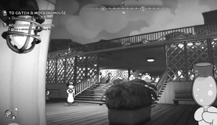Затем поднимитесь на палубу 3 (Deck 3) в зону с играющей группой и сфотографируйте агентов ПБМ в левом углу.