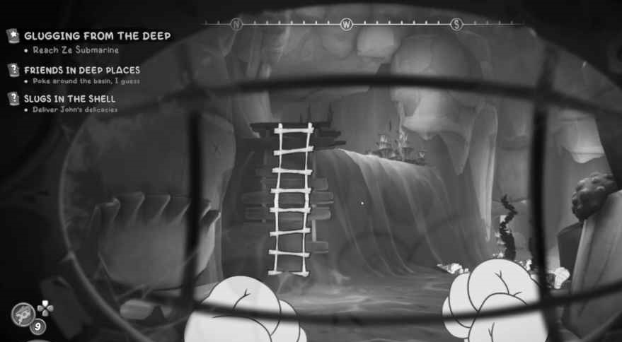 Оказавшись под водой, добравшись до большой области с подлодкой справа, поднимитесь по лестнице еподалеку. В самом конце пути поговорите с персонажем.
