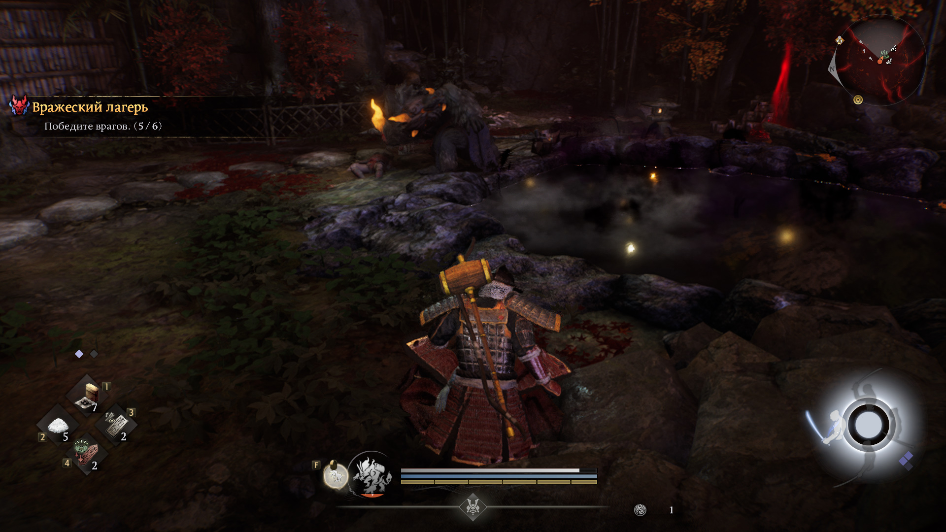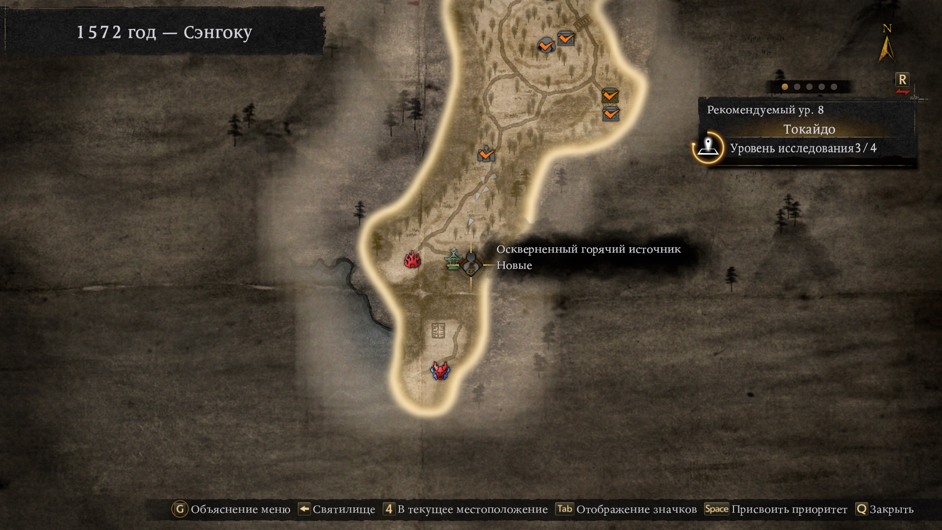 После этого двигайтесь на восток вдоль границу региона, убивая бандитов и демонов. В конце концов, на северо-востоке Токайдо вы обнаружите святилище «Паром Икэда». Рядом есть вражеский лагерь, в котором расположены 7 демонов. Победите всех, чтобы зачистить лагерь, открыть сундук и спасти Кодама.