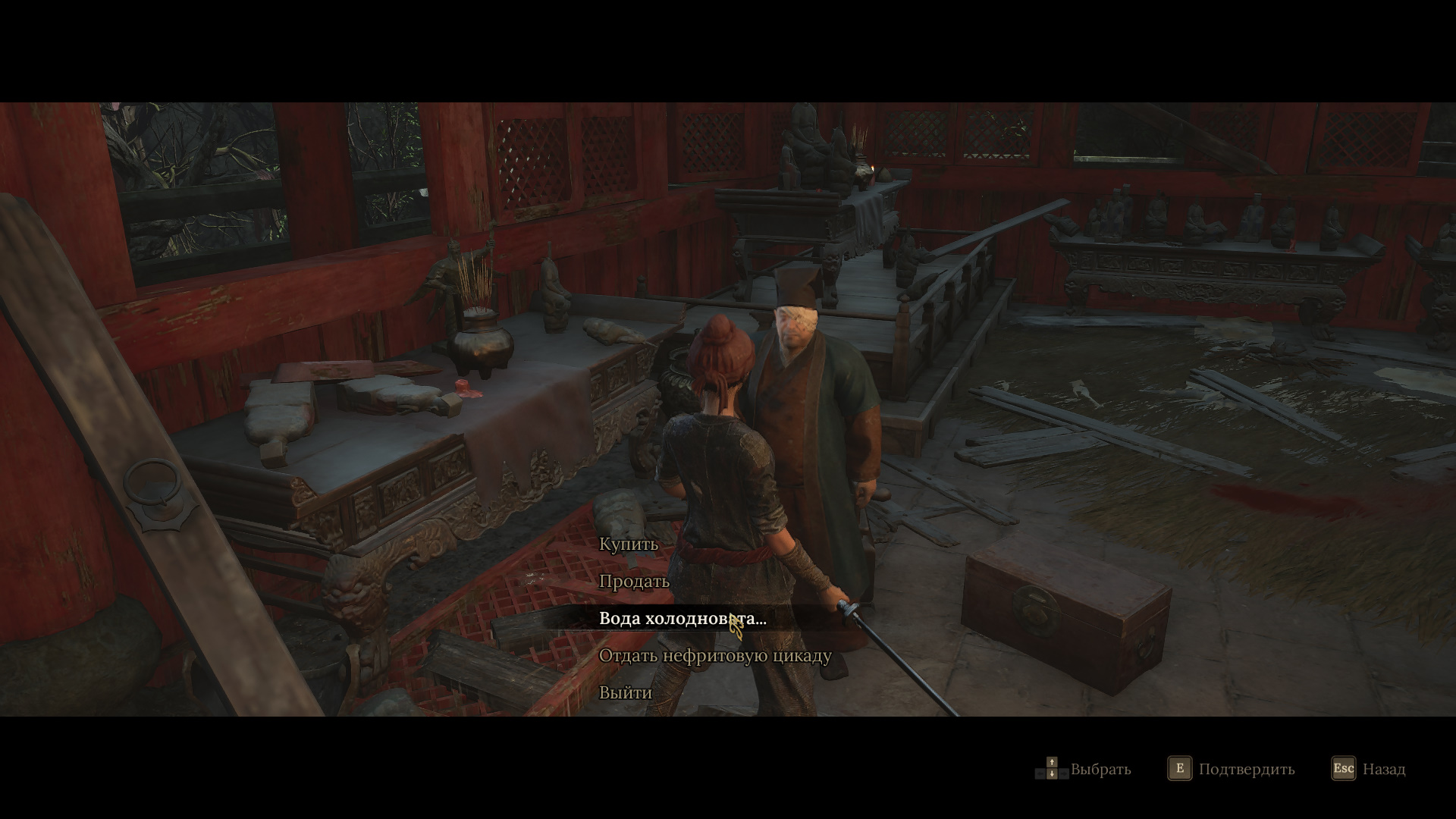 - Нянь Суйчан. Спуститесь вниз и передайте ртутную кровь Няню Суйчану. Он скажет, что ему нужно вернуться в Священный храм, чтобы спасти брата. Также вы получите ситник (расходник, увеличивающий восстановление выносливости).